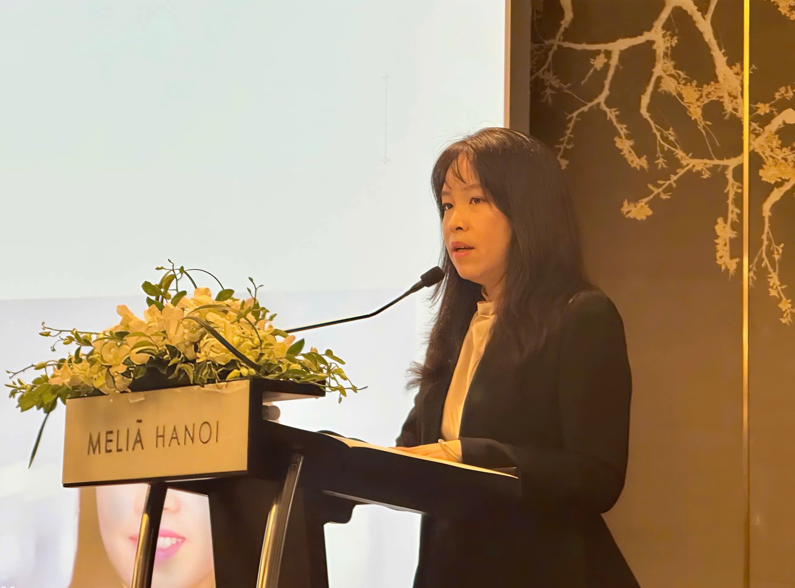 | Bà Hoàng Hải Anh – Phó Chủ tịch kiêm Tổng Thư ký Hiệp hội Kinh doanh Chứng khoán Việt Nam (VASB) phát biểu tại Hội thảo. |
