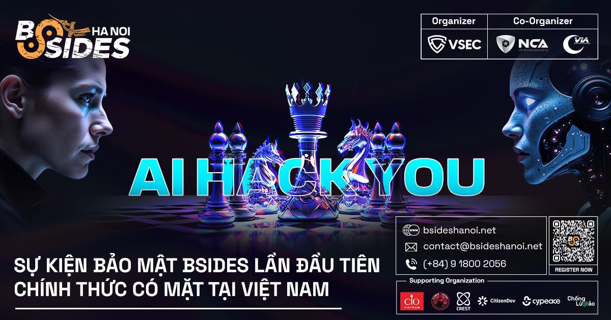 BSides Hanoi 2025: “AI Hack You” - Việt Nam sẽ diễn ra tại Tòa nhà G-Group, số 05 Nguyễn Thị Duệ, phường Yên Hòa, Hà Nội; Hình thức: Tham dự trực tiếp (số lượng vé giới hạn).