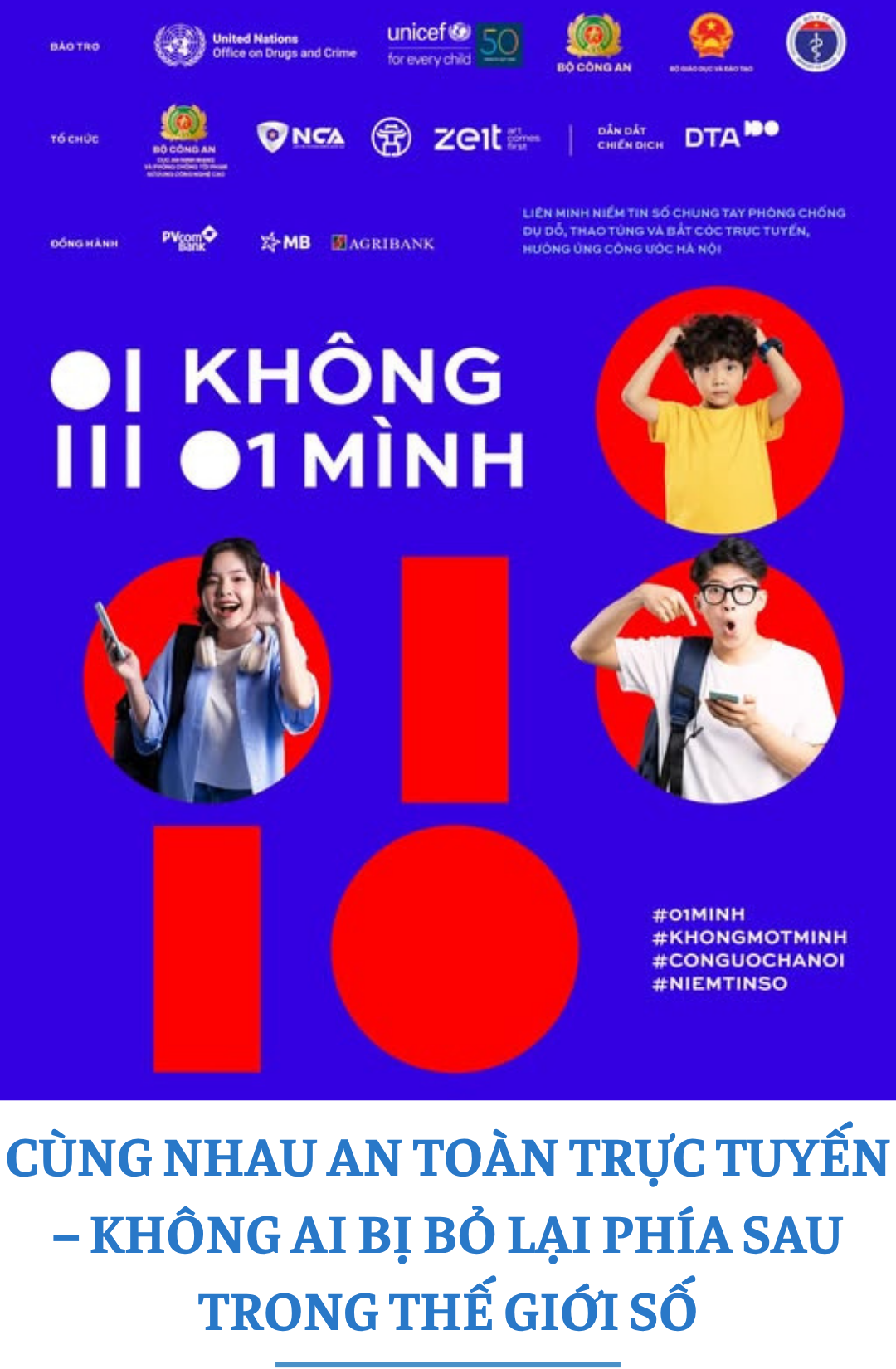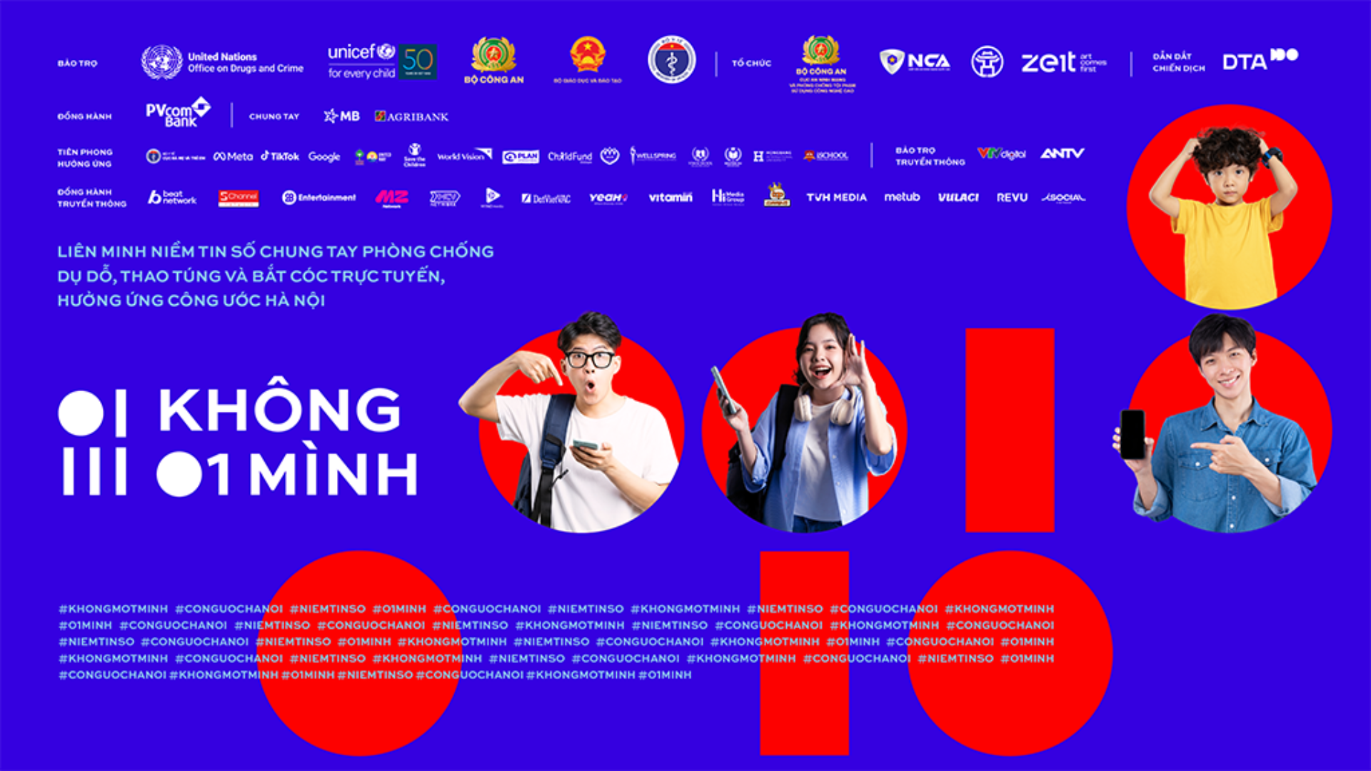 Chiến dịch "Không Một Mình" do Liên minh Niềm Tin Số khởi xướng, dưới sự bảo trợ của Cơ quan phong chống Ma túy và Tội phạm Liên Hợp Quốc (UNODC), Quỹ Nhi đồng Liên Hợp Quốc (UNICEF), Bộ Công an, Bộ Giáo dục và Đào tạo, Bộ Y tế và phối hợp tổ chức của Cục An ninh mạng và Phòng, chống tội phạm sử dụng công nghệ cao (Bộ Công an), Hiệp hội An ninh mạng Quốc gia, UBND Thành phố Hà Nội. Cùng sự đồng hành của các doanh nghiệp, nền tảng mạng xã hội, và tổ chức bảo vệ quyền trẻ em.