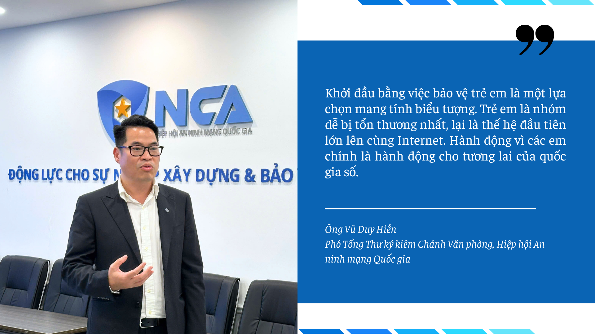 Theo ông Vũ Duy Hiền - Phó Tổng Thư ký kiêm Chánh Văn phòng, Hiệp hội An ninh mạng Quốc gia, mục tiêu của chiến dịch là xây dựng lá chắn số nhiều tầng, bảo vệ trẻ em và thanh thiếu niên trước các mối đe dọa ẩn trong thế giới mạng - từ lừa đảo, thao túng tâm lý đến tội phạm sử dụng AI để mạo danh hoặc “bắt cóc trực tuyến”.