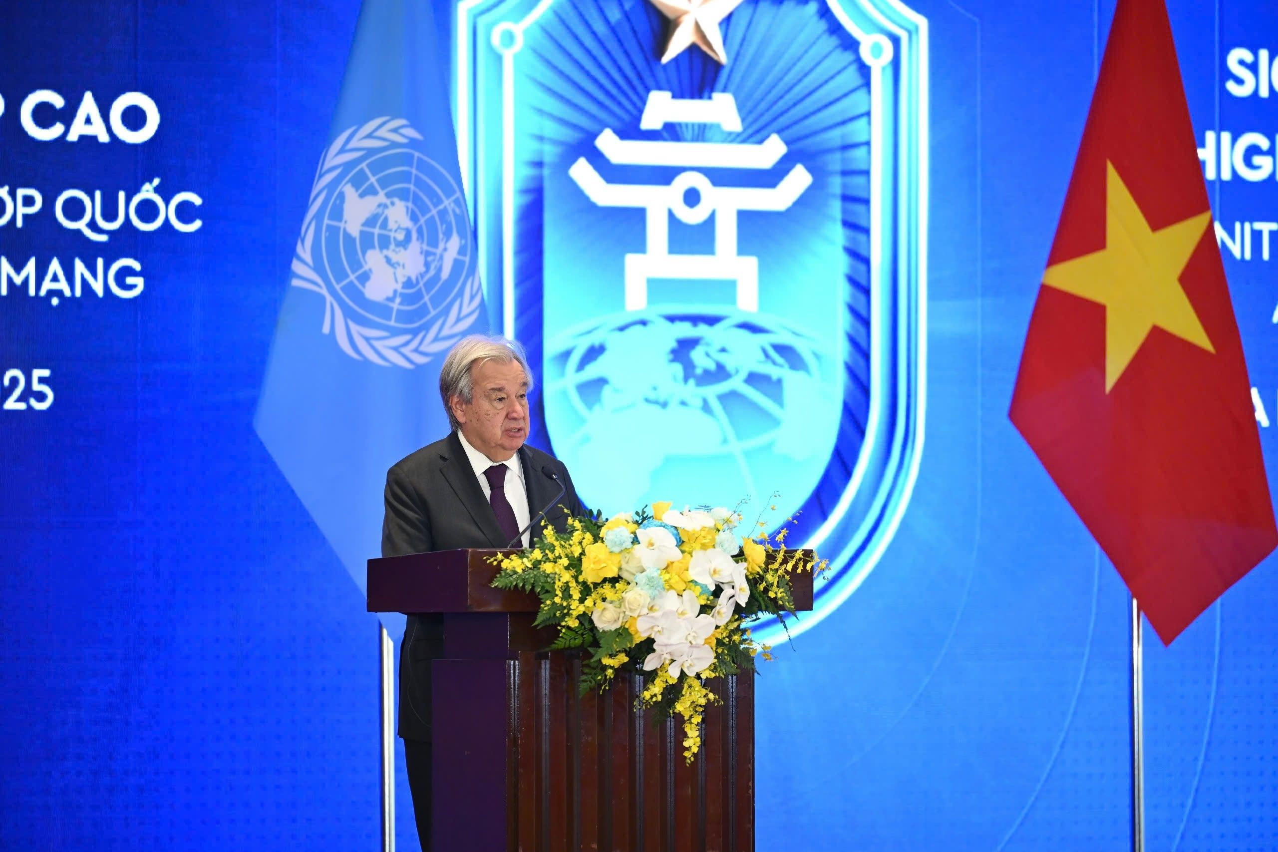 Phát biểu tại buổi Họp báo, Tổng Thư ký Liên Hợp Quốc António Guterres cảm ơn Việt Nam đã dành sự đón tiếp nồng hậu; đánh giá đây là thời khắc lịch sử và càng có ý nghĩa khi diễn ra ở Việt Nam – một trung tâm đổi mới sáng tạo, công nghệ và ngày càng trở thành mắt xích quan trọng trong chuỗi cung ứng điện tử trên thế giới, một đất nước rất hứa hẹn về tiềm năng số, nhưng cũng đi kèm các thách thức.