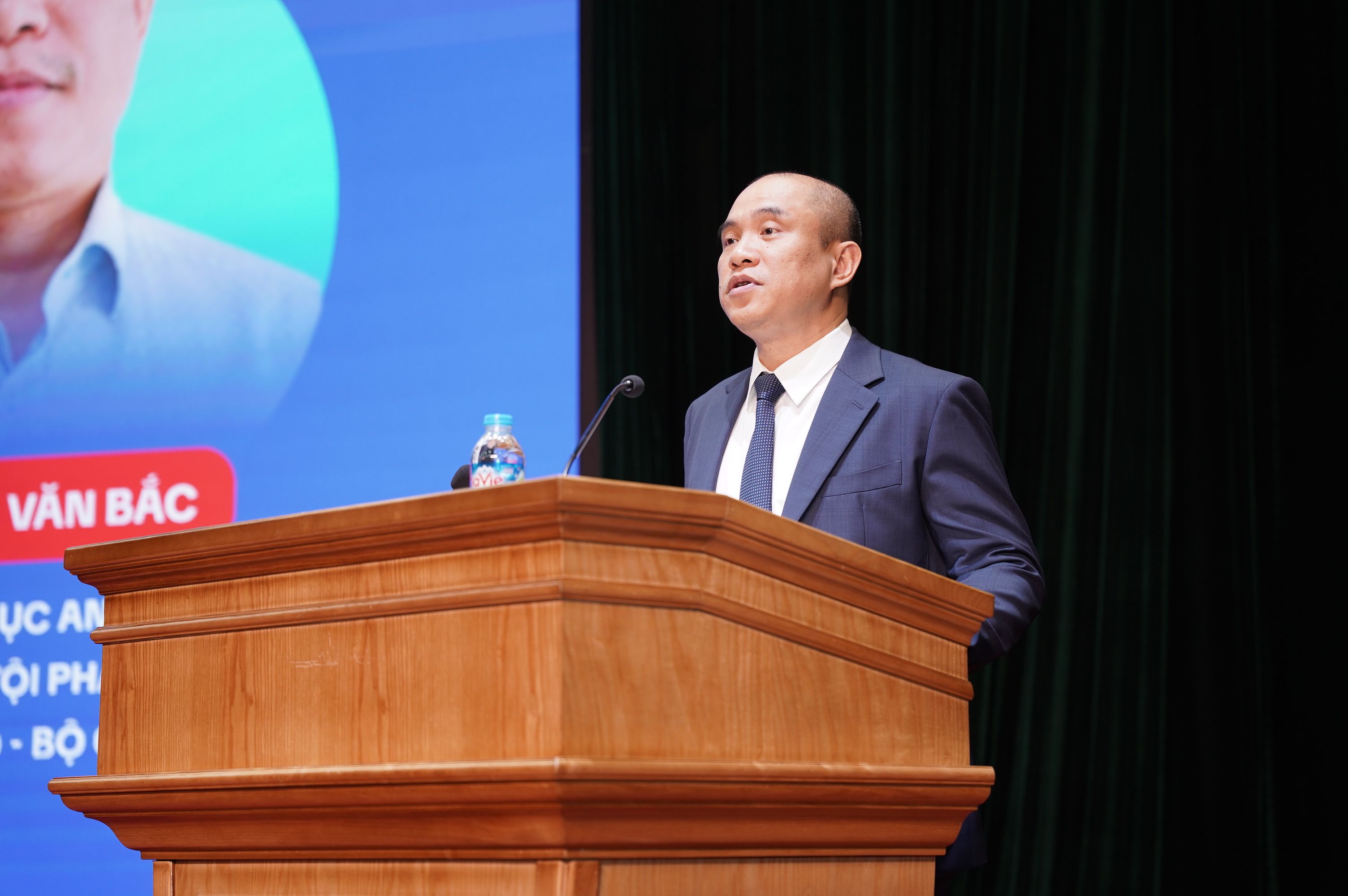 | Đại tá Hà Văn Bắc, Phó Cục Trưởng Cục An Ninh Mạng và Phòng Chống Tội Phạm Sử dụng Công Nghệ Cao - Bộ Công An phát biểu khai mạc. Ảnh Nguyễn Cường. |
