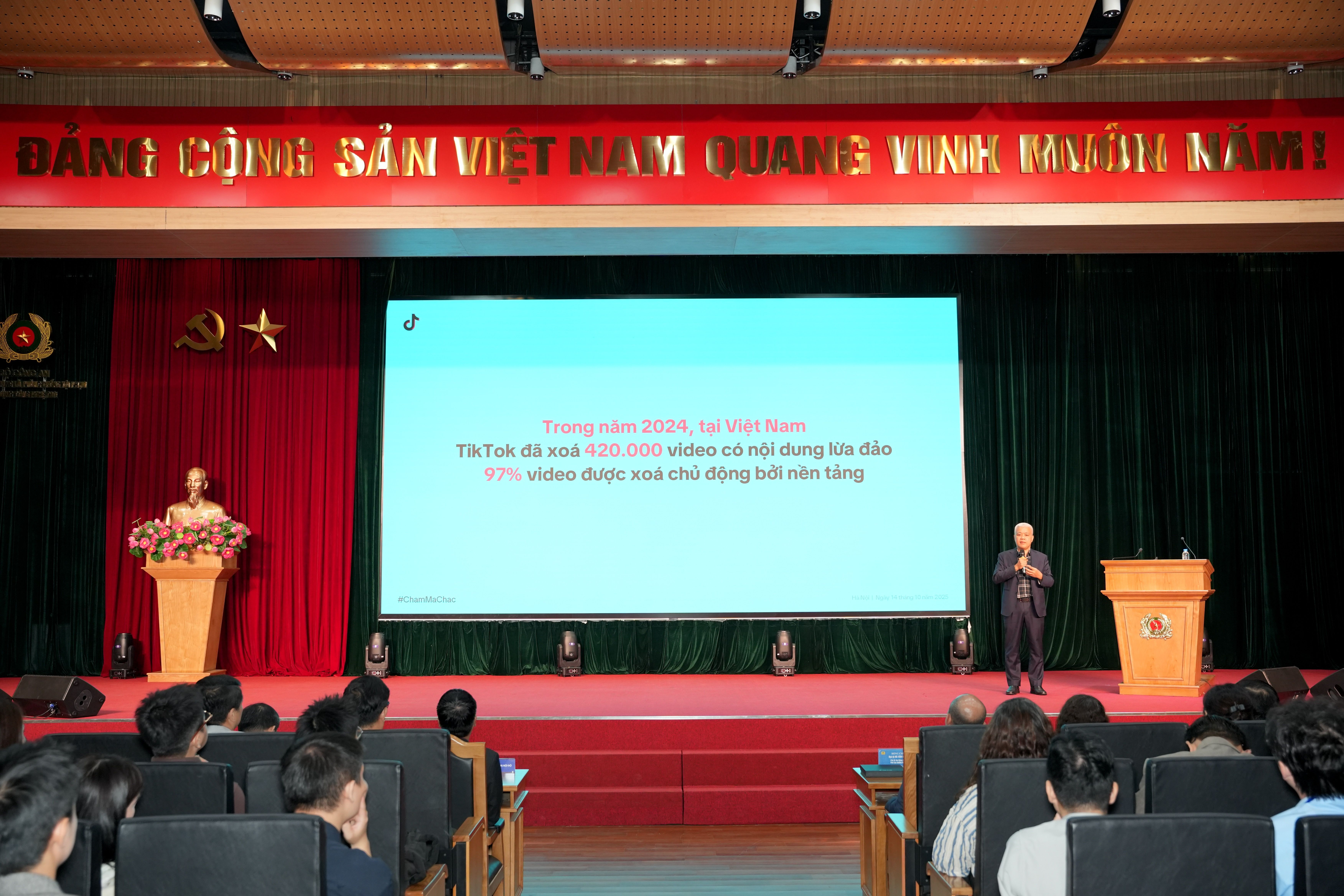 Phát biểu tại lễ phát động, Đại tá Hà Văn Bắc, Phó Cục trưởng Cục A05 – Bộ Công an, nhấn mạnh: “Trong thời gian qua, chúng tôi đánh giá cao sự chủ động và tinh thần trách nhiệm của các nền tảng trực tuyến, mạng xã hội và doanh nghiệp công nghệ khi đồng hành cùng cơ quan quản lý nhà nước trong công tác tuyên truyền, cảnh báo và ngăn chặn lừa đảo trực tuyến. Các nền tảng như TikTok, Google đã tích cực lan tỏa các thông điệp truyền thông an toàn mạng đến hàng chục triệu người dùng. Đây là minh chứng cho thấy chống lừa đảo trực tuyến không chỉ là nhiệm vụ của lực lượng công an, mà là trách nhiệm chung của toàn hệ sinh thái số”.