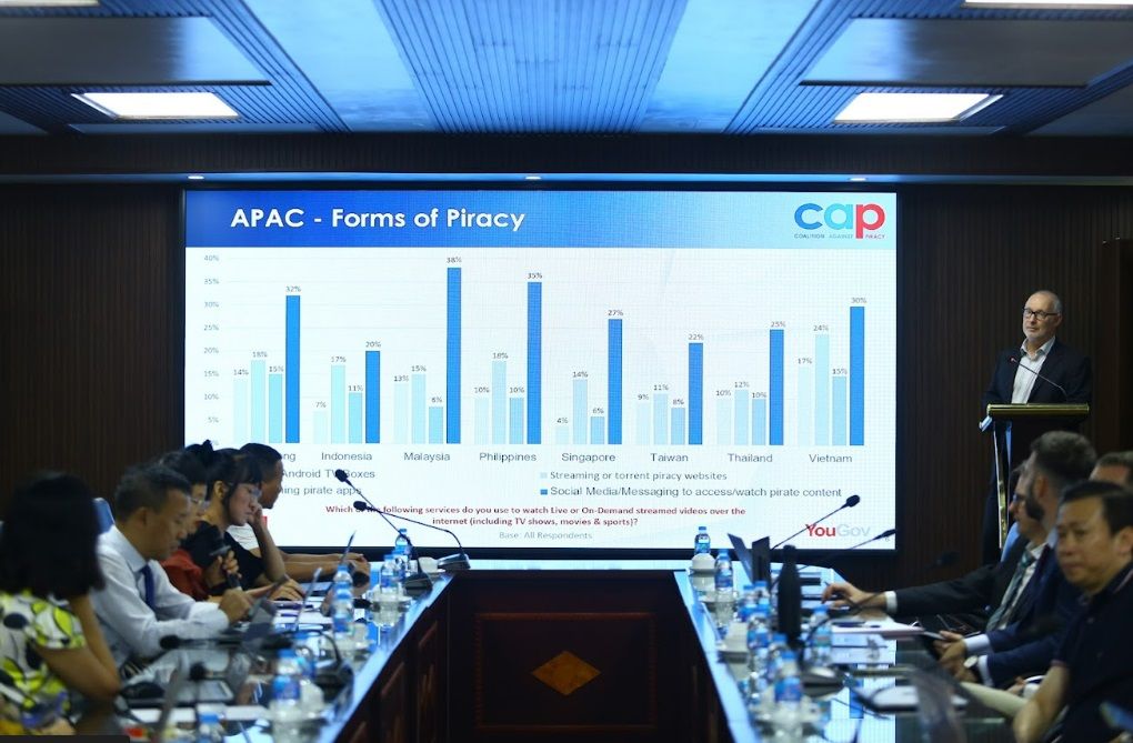 Trình bày bức tranh tổng thể về thực trạng vi phạm bản quyền tại Việt Nam cũng như các nước Đông Nam Á tại hội thảo, ông Matthew Cheetham - Tổng Giám đốc AVIA/CAP cho hay, theo các nghiên cứu mới nhất, Việt Nam hiện là một trong những quốc gia có tỷ lệ vi phạm bản quyền nội dung số thuộc nhóm cao nhất khu vực châu Á - Thái Bình Dương.
