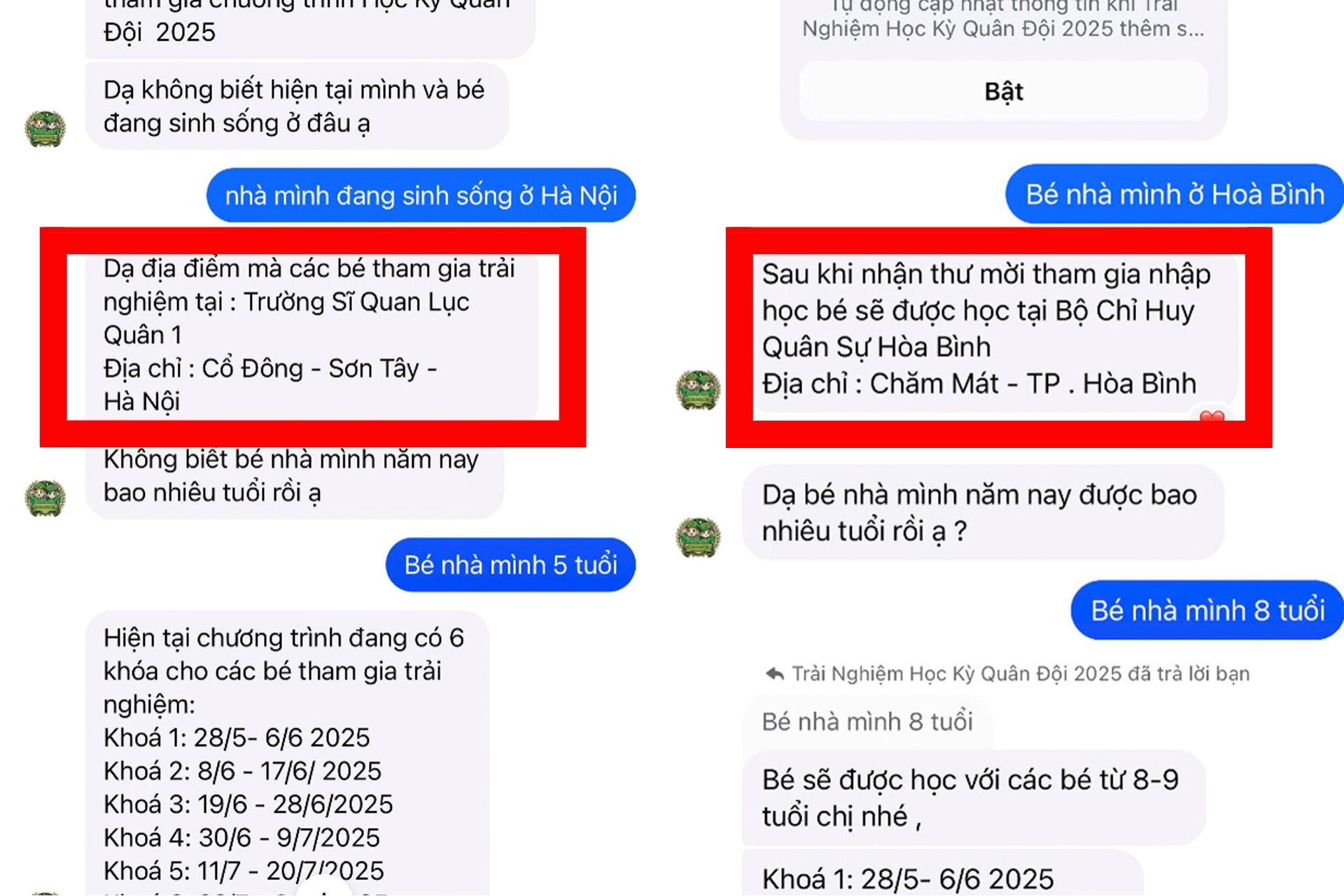 Để kiểm chứng thêm, phóng viên trong vai người có nhu cầu cho con tham gia “học kỳ quân đội”, sử dụng nhiều tài khoản khác nhau để tiếp cận chương trình sau khi đổi tên thành “Trải nghiệm học kỳ quân đội 2025”. Điều đáng chú ý là dù thay tên, nhưng nội dung và cách tư vấn của những người xưng là “chuyên viên” vẫn y hệt như trước với chị V.