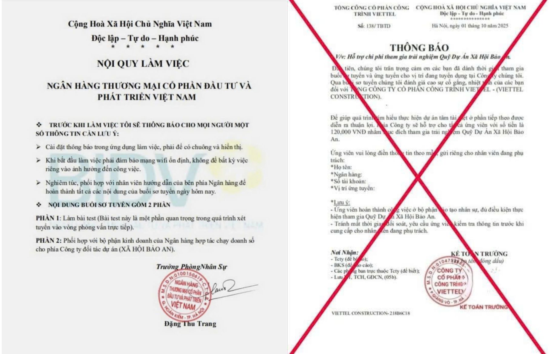 | Văn bản tuyển dụng giả mạo BIDV |