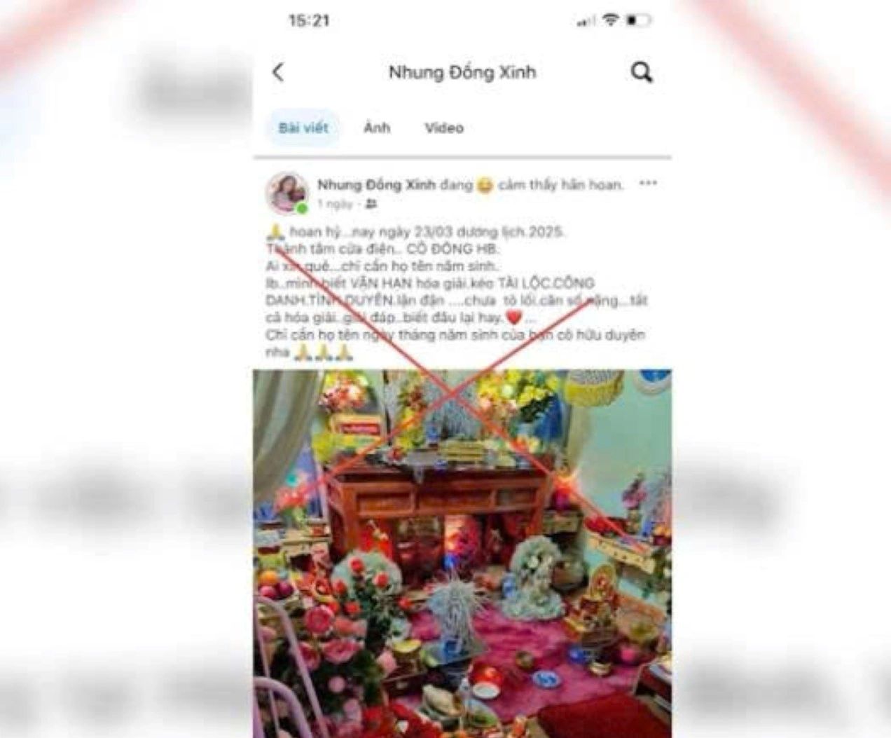 Không chỉ là một vụ việc đơn lẻ. Gần đây, tại Yên Thủy, tỉnh Phú Thọ, cơ quan công an đã khởi tố Nguyễn Thị Nhung (hiện tạm trú ở xã Hoàng Vân, Bắc Ninh) về hành vi lừa đảo chiếm đoạt tài sản qua hình thức “làm bùa yêu, cắt duyên”. Nữ bị can đăng tài khoản Facebook “Nhung Đồng Xinh”, kêu gọi người dân chuyển tiền từ 200.000đ tới 1,5 triệu đồng cho mỗi lần làm “bùa yêu”, “giải hạn”, “cầu tài lộc”.