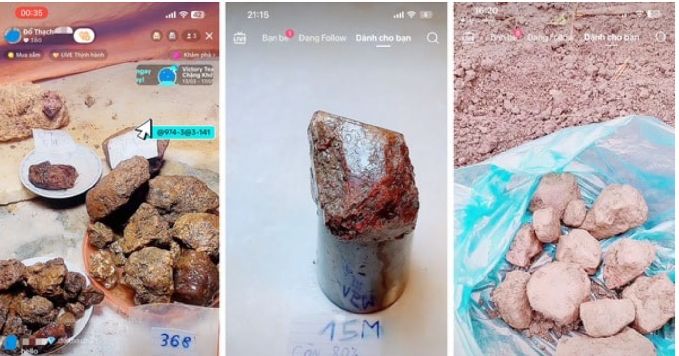 Trong các buổi phát trực tiếp này, các đối tượng đưa ra hình ảnh và thông tin sai sự thật về việc việc “đổ thạch” có thể tìm thấy đá quý có giá trị cao và sẽ được thu mua với giá hấp dẫn. Những thông tin lừa đảo này khiến không ít người xem tin tưởng và chuyển tiền tham gia “đổ thạch”.