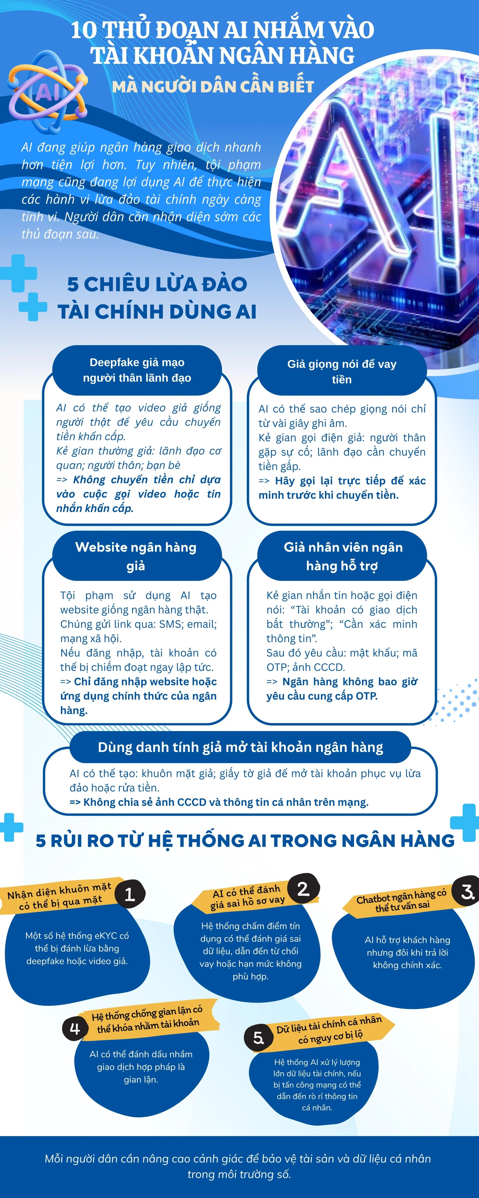 Tuyến phòng thủ quan trọng nhất vẫn nằm ở nhận thức của người dùng. Khi người dân chủ động nâng cao cảnh giác trước các chiêu trò lừa đảo và tuân thủ các nguyên tắc an toàn số cơ bản, rủi ro từ những “bẫy” tài chính trong kỷ nguyên AI sẽ được hạn chế đáng kể.