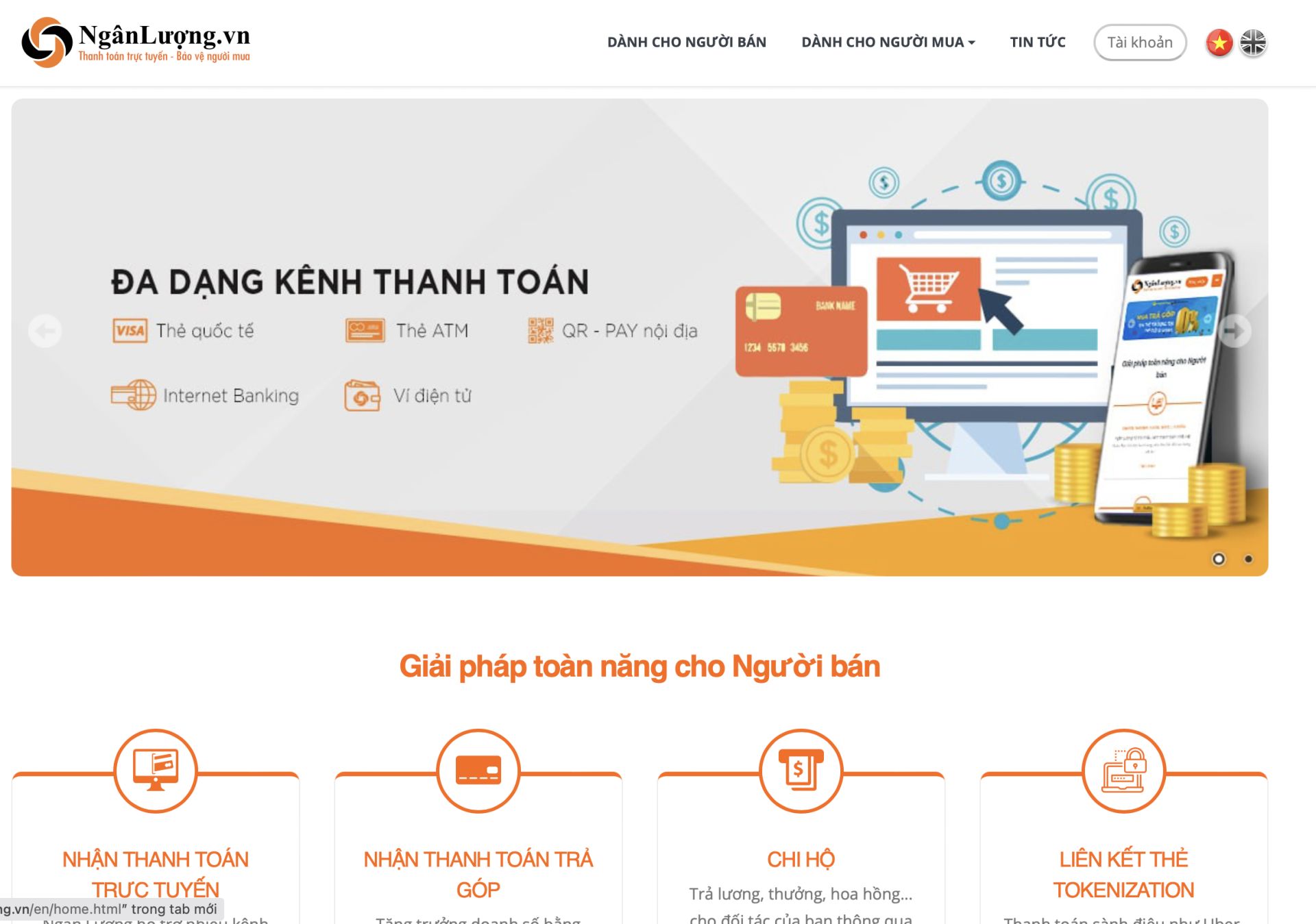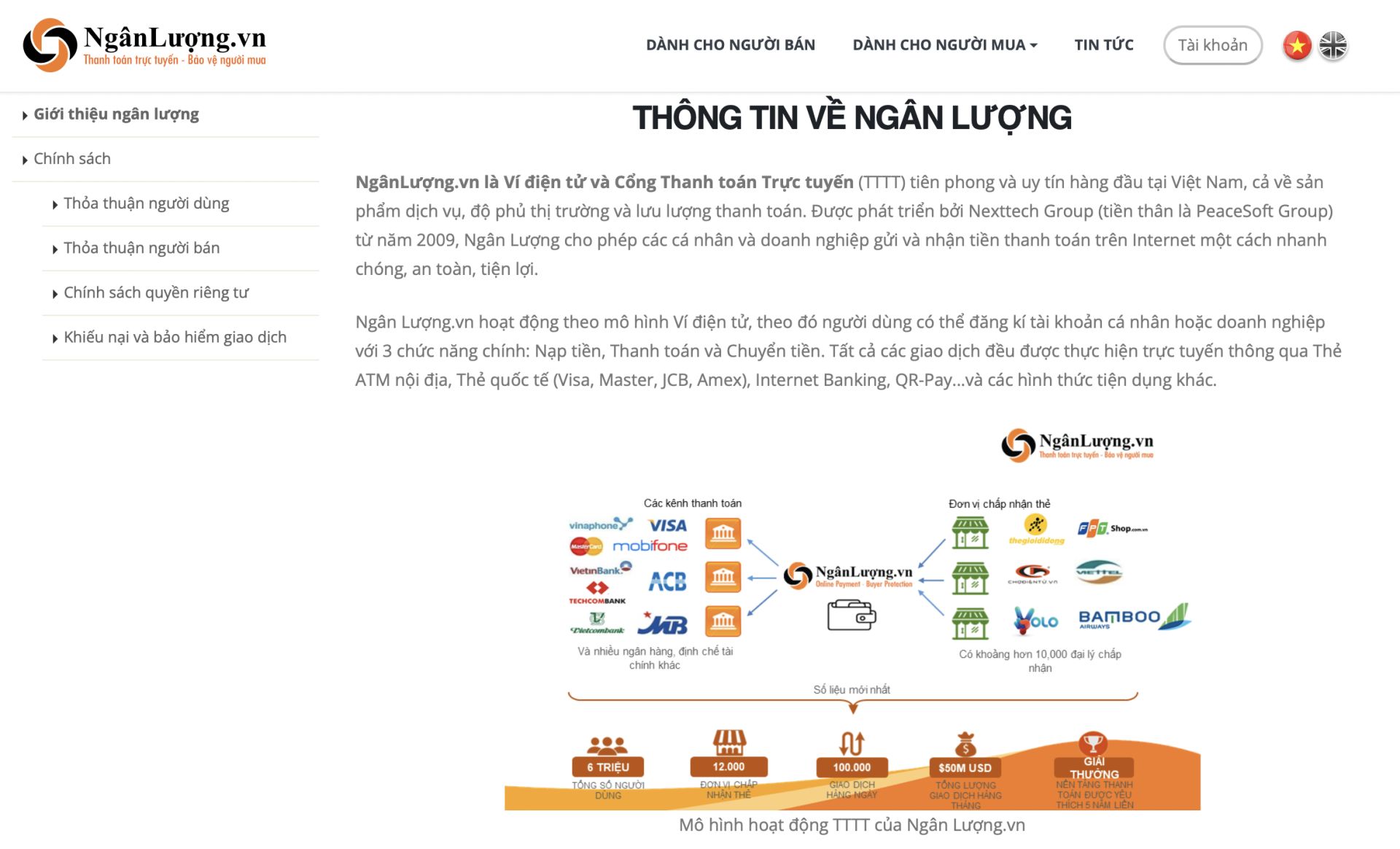 | Thông tin về Ngân Lượng trên website. |