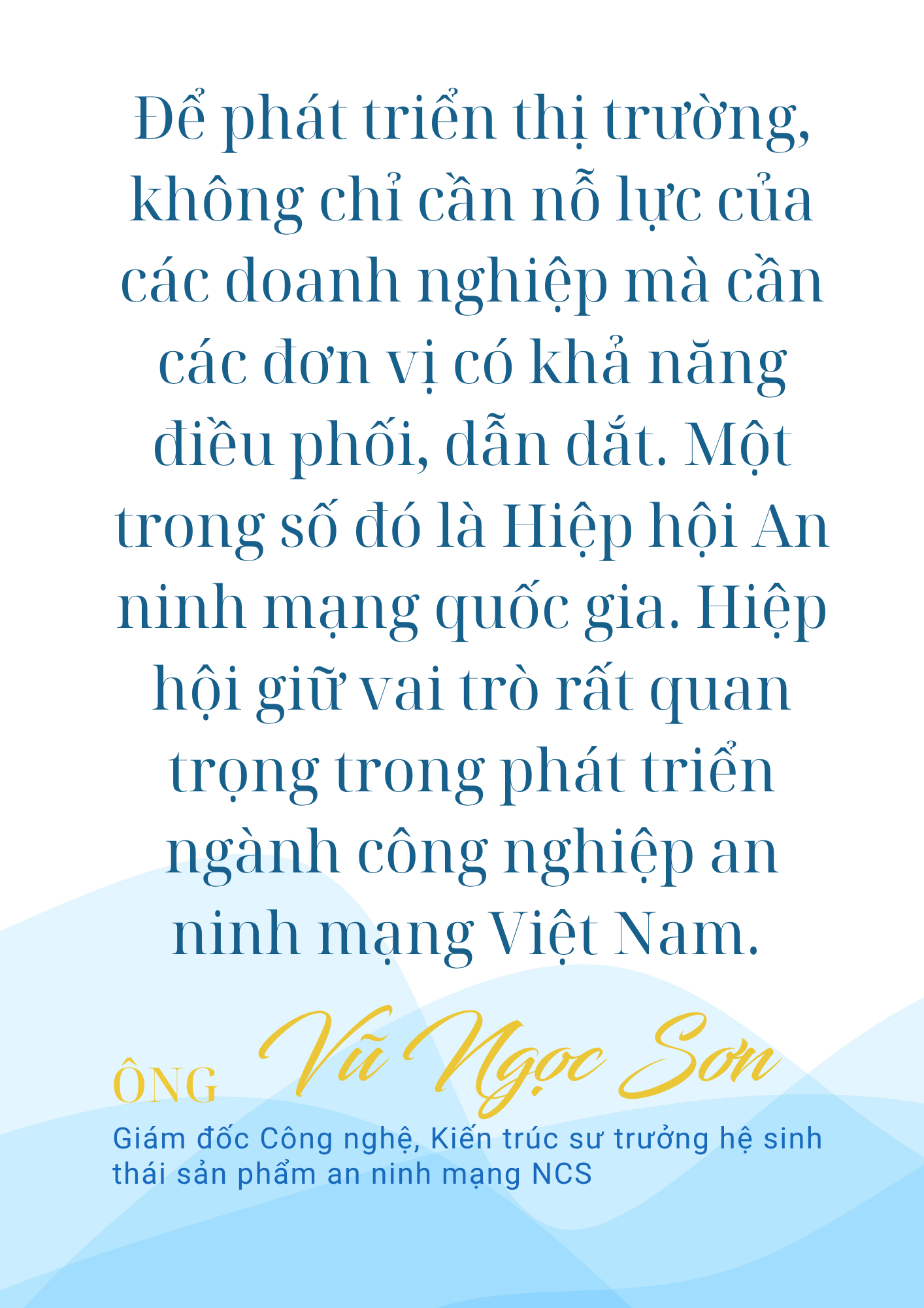 Không chỉ là Giám đốc Công nghệ, Kiến trúc sư trưởng hệ sinh thái sản phẩm an ninh mạng NCS, ông Vũ Ngọc Sơn còn là Trưởng Ban Nghiên cứu, tư vấn, phát triển công nghệ và Hợp tác quốc tế của Hiệp hội An ninh mạng quốc gia (NCA)?