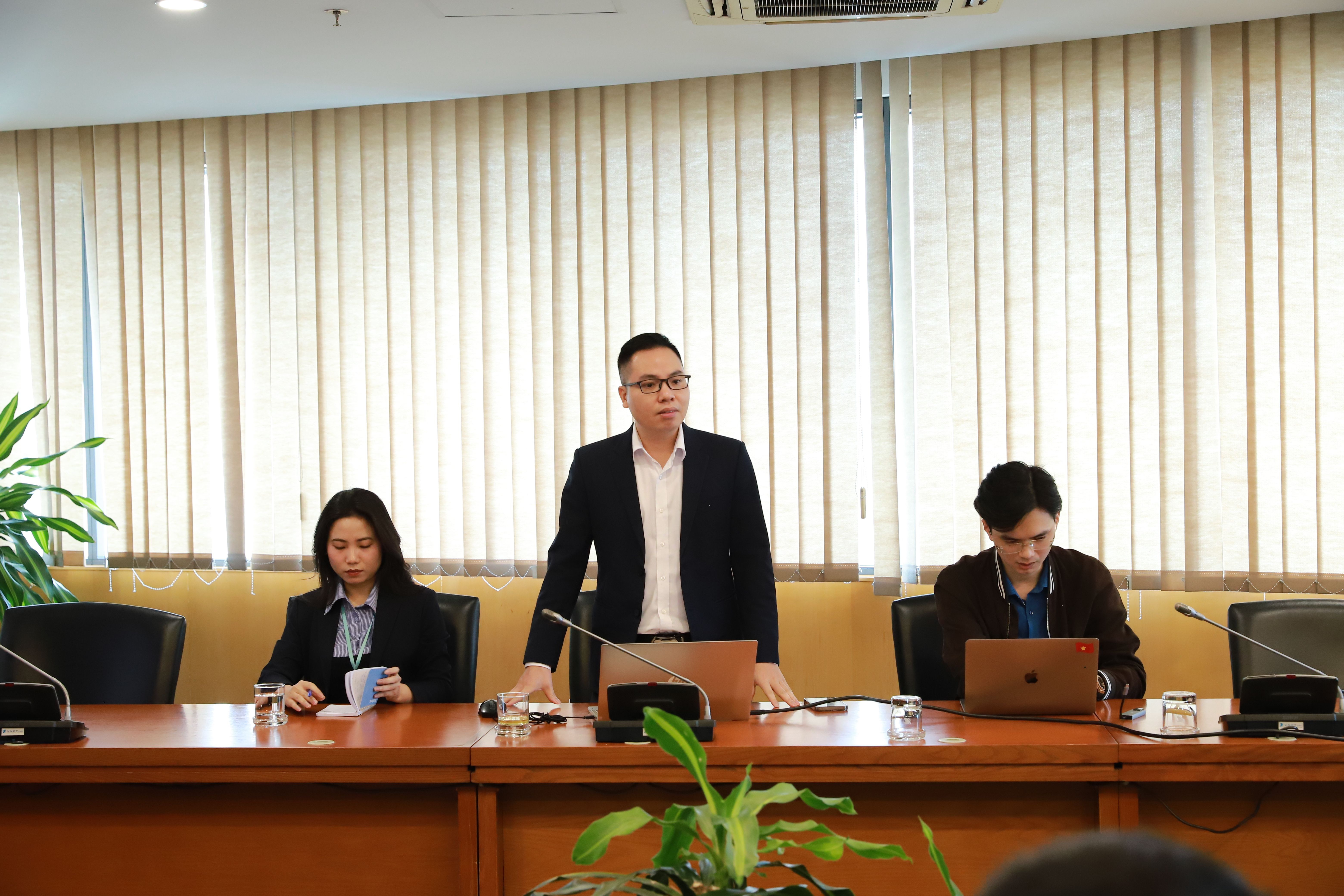 | Đại diện nhóm tác giả Nền tảng quản lý tri thức số và hỏi đáp thông minh - iKnow trình bày trước giám khảo |