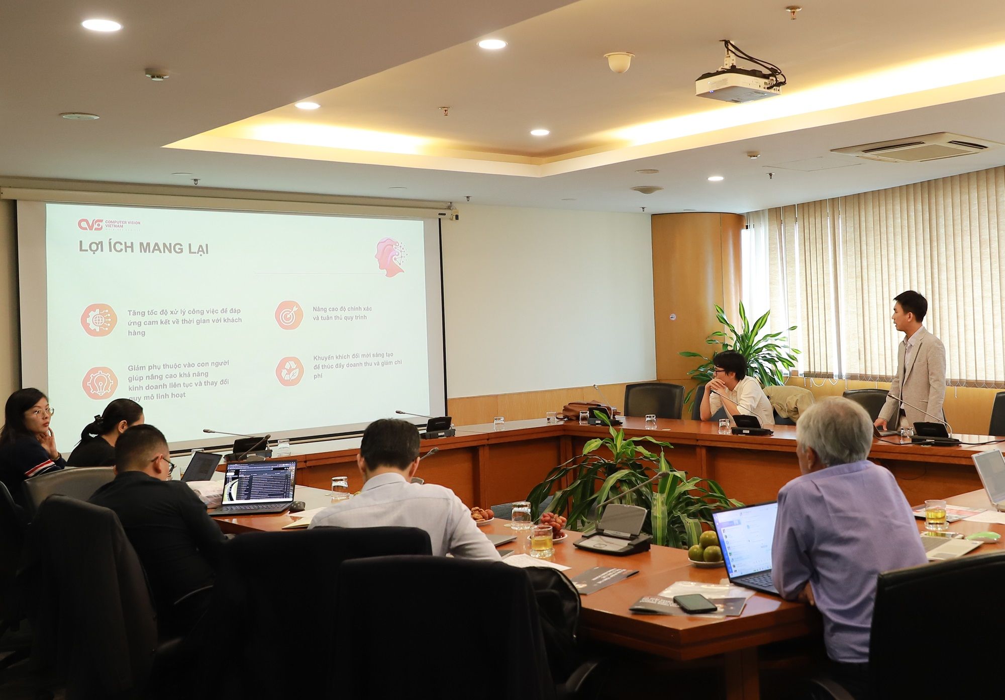 | Nhóm tác giả Cogover - nền tảng quản trị khách hàng Customer Relationship Management - CRM được thiết kế theo kiến trúc AI-native kết hợp Low-code No-code trình bày trước giám khảo |
