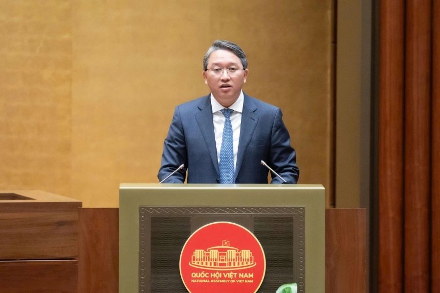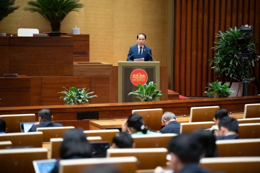| Chủ nhiệm Ủy ban Pháp luật và Tư pháp Hoàng Thanh Tùng trình bày báo cáo thẩm tra, đề nghị quy định chặt chẽ hơn về bảo mật và liên thông dữ liệu. |