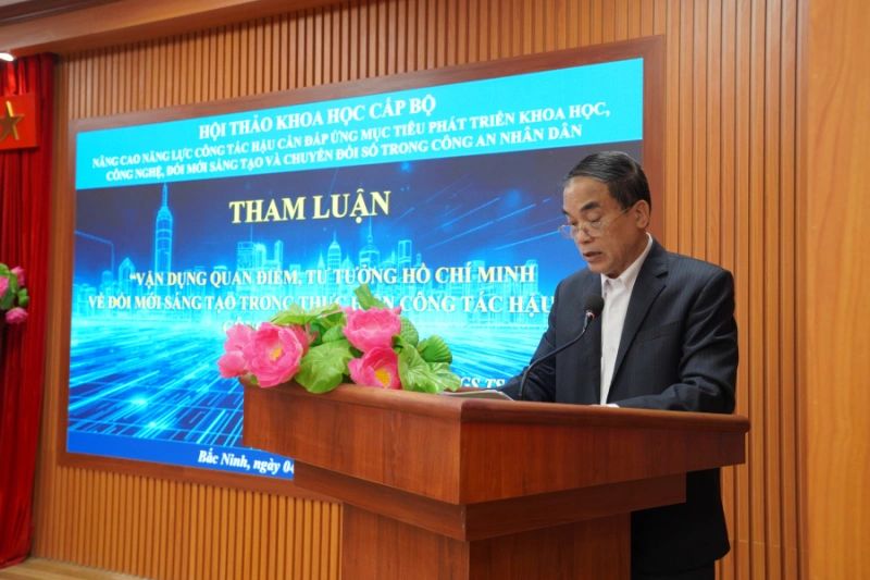 Đại tá Đỗ Đức Trịnh, Phó Giám đốc Công an tỉnh Bắc Ninh chia sẻ những kinh nghiệm trong mô hình đổi mới sáng tạo trong chuyển đổi số các mặt công tác hậu cần của Công an tỉnh Bắc Ninh. Lãnh đạo Công an tỉnh Bắc Ninh đề xuất Bộ Công an xây dựng mô hình hệ thống dữ liệu phục vụ công tác hậu cần thông minh; triển khai các phần mềm theo hướng quản lý dữ liệu tập trung; ban hành khung năng lực chuyển đổi số hậu cần CAND giai đoạn 2025-2030; tranh thủ các nguồn lực để phát triển hạ tầng công nghệ thông tin hiệu quả, bền vững và chú trọng công tác đảm bảo an toàn thông tin trong chuyển đổi số…