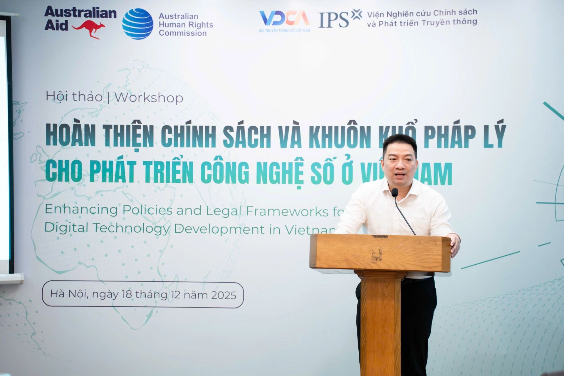 Nhằm hoàn thiện chính sách, pháp luật và cơ chế quản lý phù hợp với thực tiễn phát triển nhanh, liên ngành của công nghệ số, sáng 18/12, Hội Truyền thông số Việt Nam (VDCA) chủ trì, Viện Nghiên cứu Chính sách và Phát triển Truyền thông (IPS) tổ chức Hội thảo “Hoàn thiện chính sách và khuôn khổ pháp lý cho phát triển công nghệ số ở Việt Nam”. Hội thảo là diễn đàn đối thoại giữa cơ quan quản lý, chuyên gia, tổ chức quốc tế và cộng đồng doanh nghiệp, hướng tới mục tiêu phát triển công nghệ số bao trùm và trí tuệ nhân tạo có trách nhiệm.
