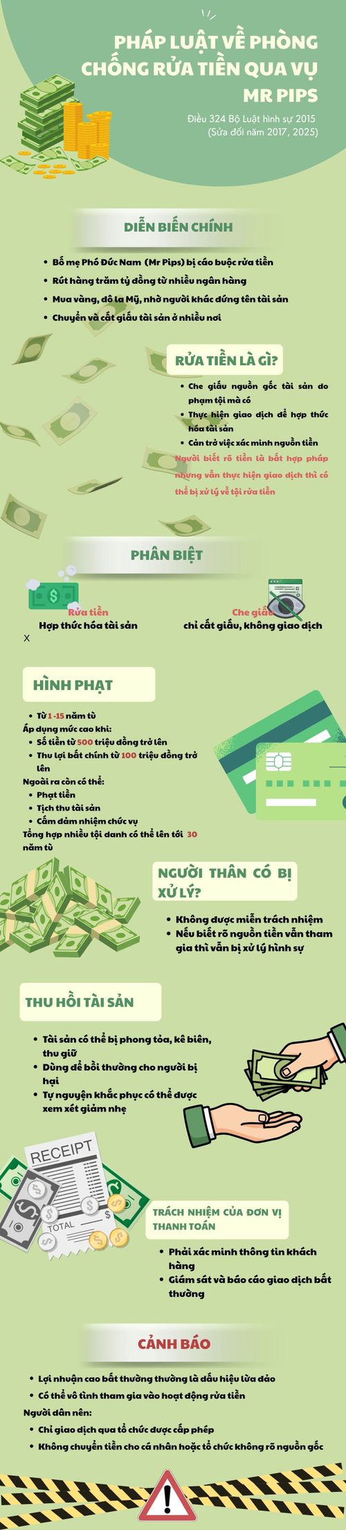 Từ vụ Phó Đức Nam (Mr Pips), quy định pháp luật về tội rửa tiền được làm rõ, bao gồm hành vi cấu thành, khung hình phạt và trách nhiệm pháp lý với người liên quan.