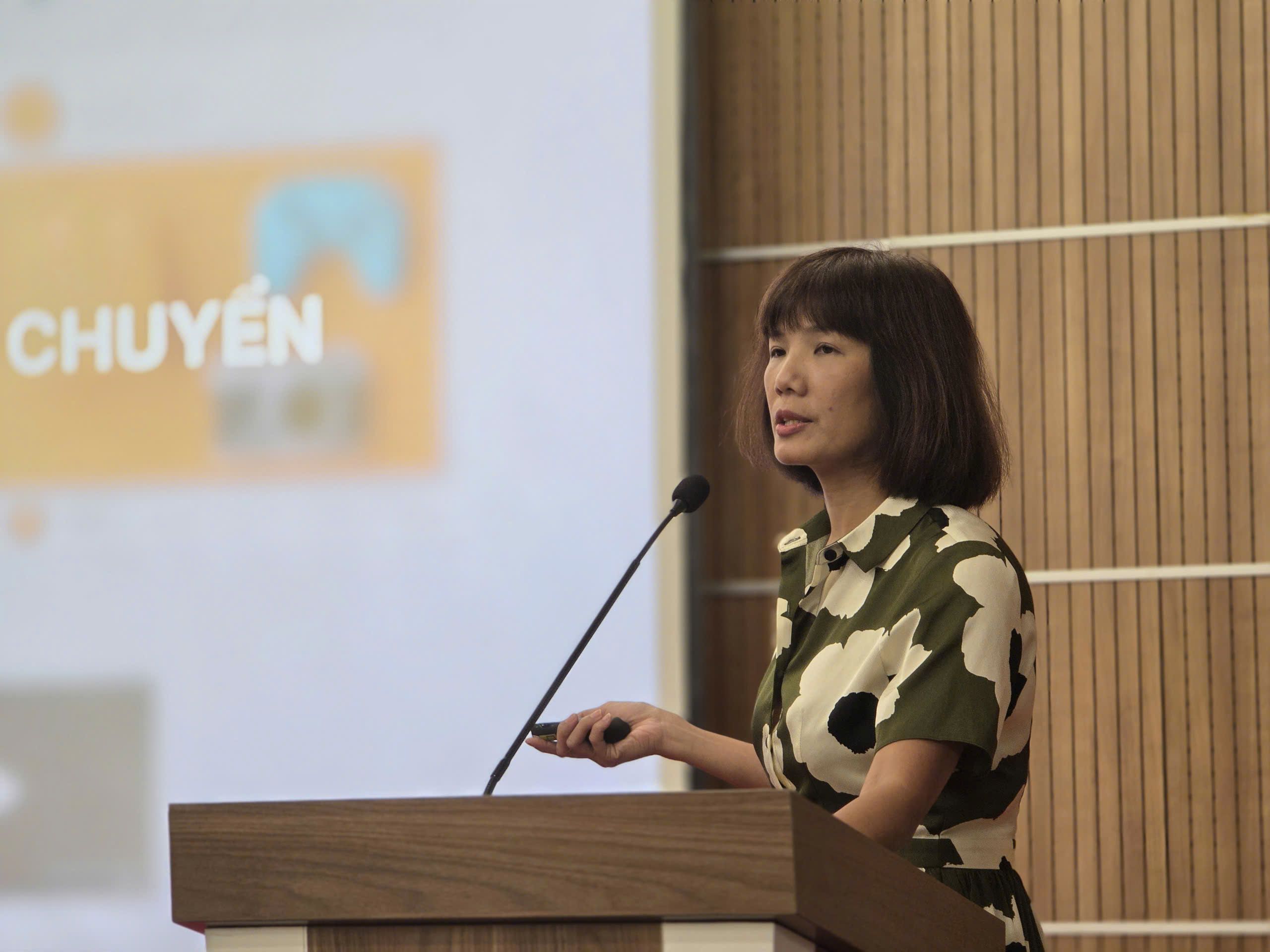 | Bà Nguyễn Thị Thanh Huyền, Phó Cục trưởng Cục Phát thanh, Truyền hình và Thông tin điện tử chia sẻ tại hội nghị giao ban chuyên đề về quảng cáo trực tuyến. Ảnh PV. |
