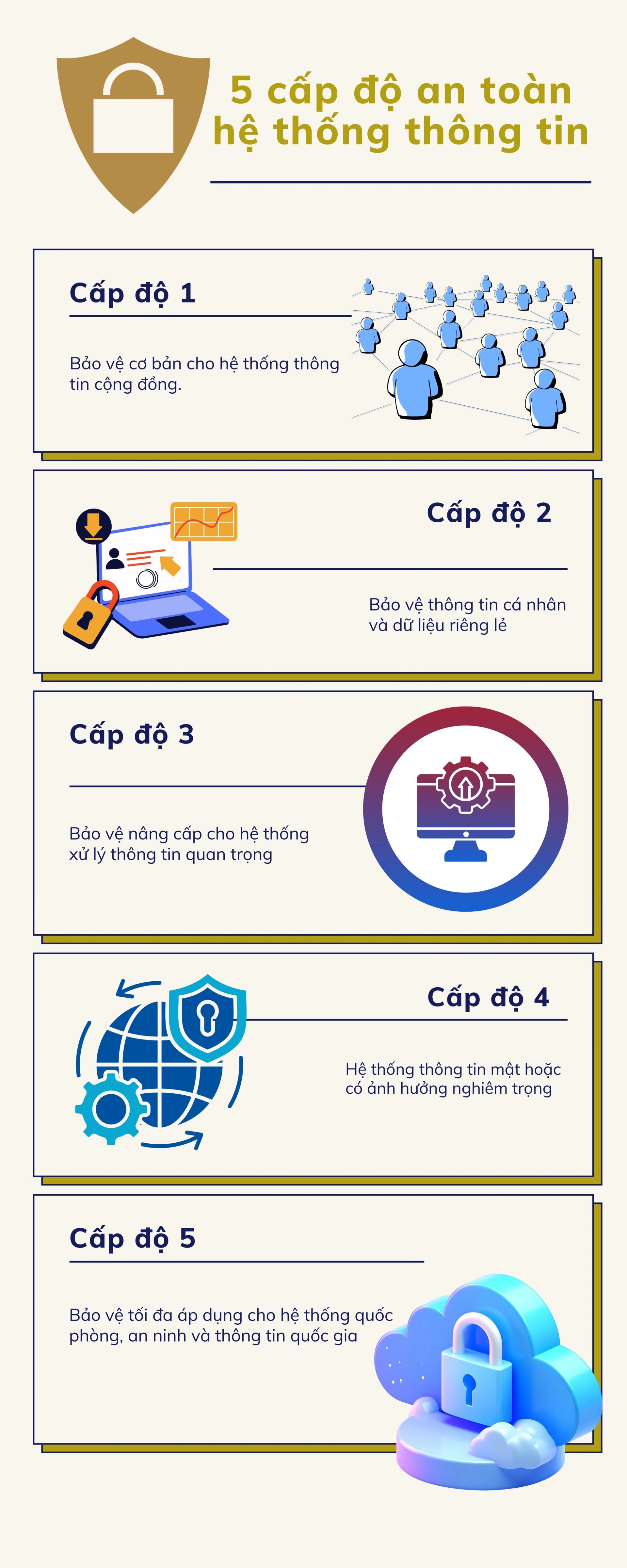 Trong bối cảnh chuyển đổi số tiếp tục được thúc đẩy mạnh mẽ, việc hoàn thiện cơ chế bảo vệ an ninh mạng theo cấp độ hệ thống thông tin có ý nghĩa đặc biệt quan trọng. Đây là bước đi cần thiết để xây dựng nền tảng an ninh vững chắc cho tiến trình phát triển số quốc gia, bảo đảm hoạt động an toàn, ổn định, liên tục của các hệ thống thông tin phục vụ quản lý, điều hành và phát triển kinh tế - xã hội.