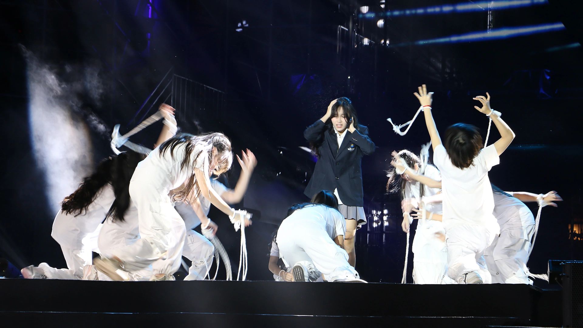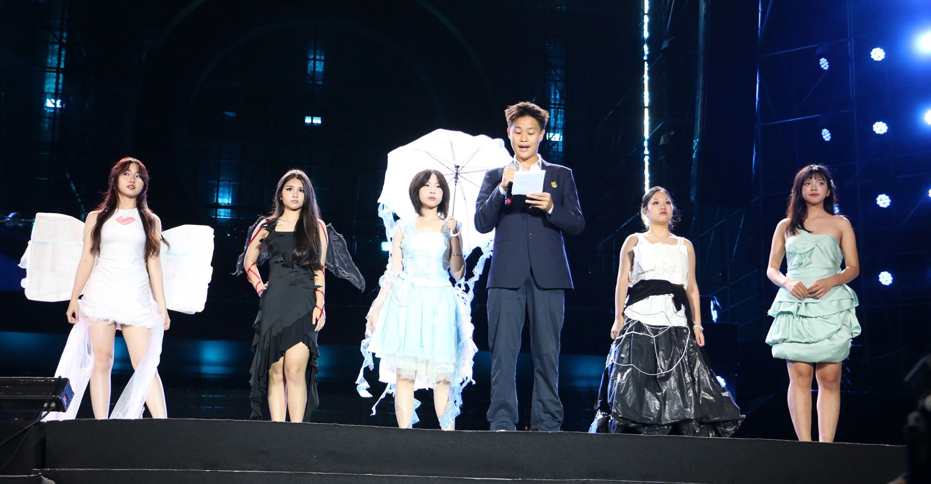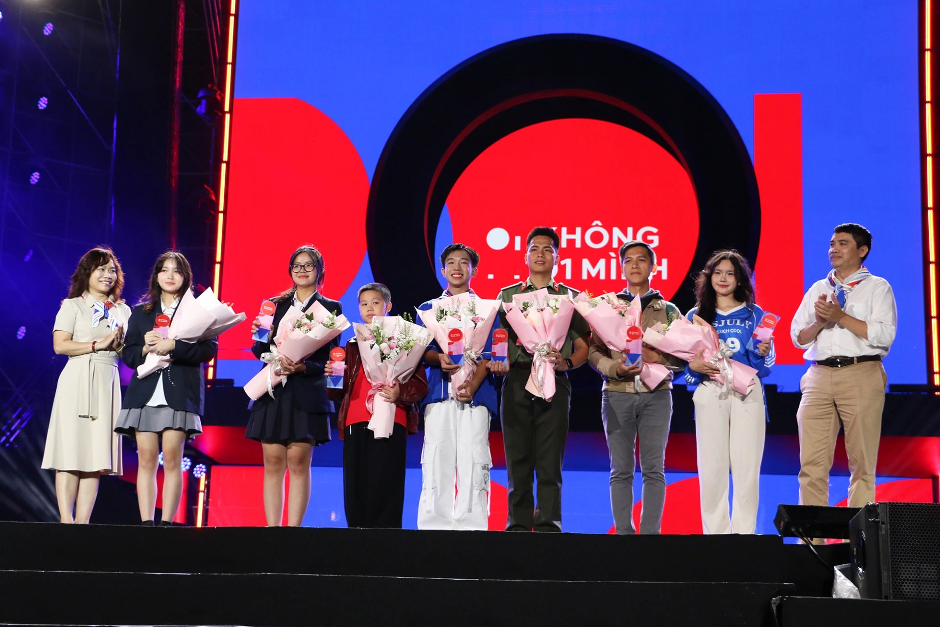 Tiết mục múa của nhóm Cyber Spirit của học sinh THPT chuyên Hà Nội - Amsterdam sôi động với sắc màu vàng rực.  |  | Tiếp đến là tiết mục trình diễn thời trang "Hiện thân kỹ số" của học sinh THPT Việt Đức.  | Các mẫu trình diễn thời trang có tính đa sắc thái, gửi gắm thông điệp "Hãy cảnh giác với các mối nguy hại online và luôn kết nối yêu thương"  | Tiết mục nhảy hiện đại kết hợp với ánh sáng LED với tiêu đề Click for Kindness, trường Vinschool. Tiết mục kể câu chuyện về sức mạnh của mỗi click tử tế, khi mỗi hành động trên mạng xã hội có thể trở thành tia sáng lan tỏa yêu thương, giúp ai đó vượt qua tổn thương  | Điệu nhảy lúc mạnh mẽ cá tính, lúc lại mềm mại dịu dàng  | Tiết mục nhảy "Bẫy" của THPT Dewey. Các vũ điệu của hip hop và rap kết hợp với âm nhạc mạnh mẽ để đưa ra lời cảnh báo về các mối nguy hại từ mạng xã hội