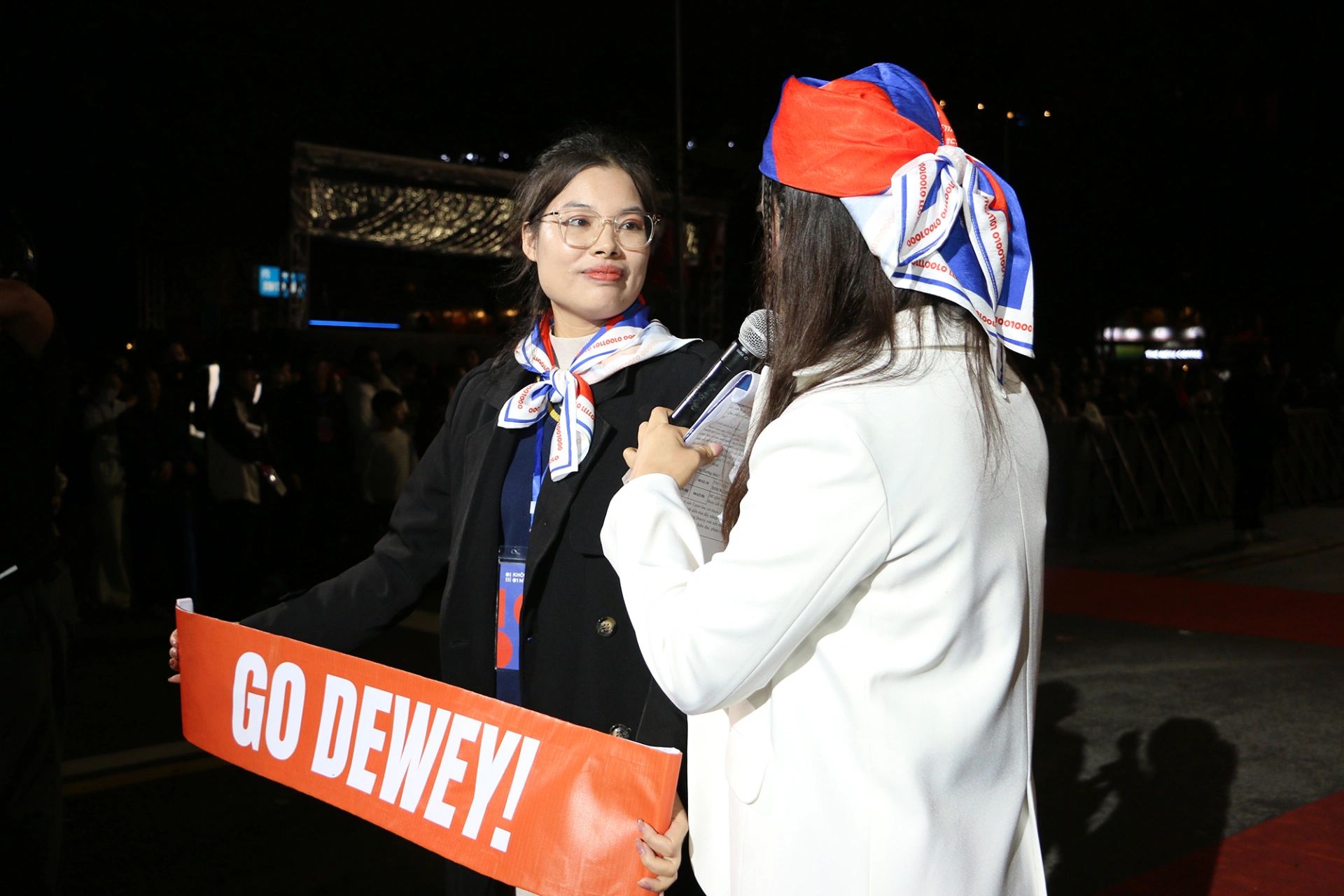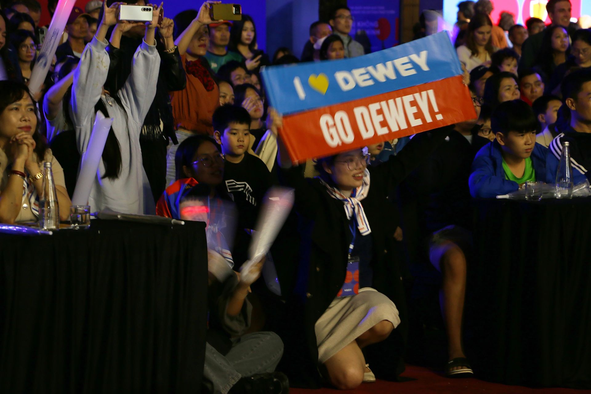 Tiết mục nhận được sự cổ vũ rất nhiệt tình của thầy cô và học sinh trường Dewey bên dưới | |