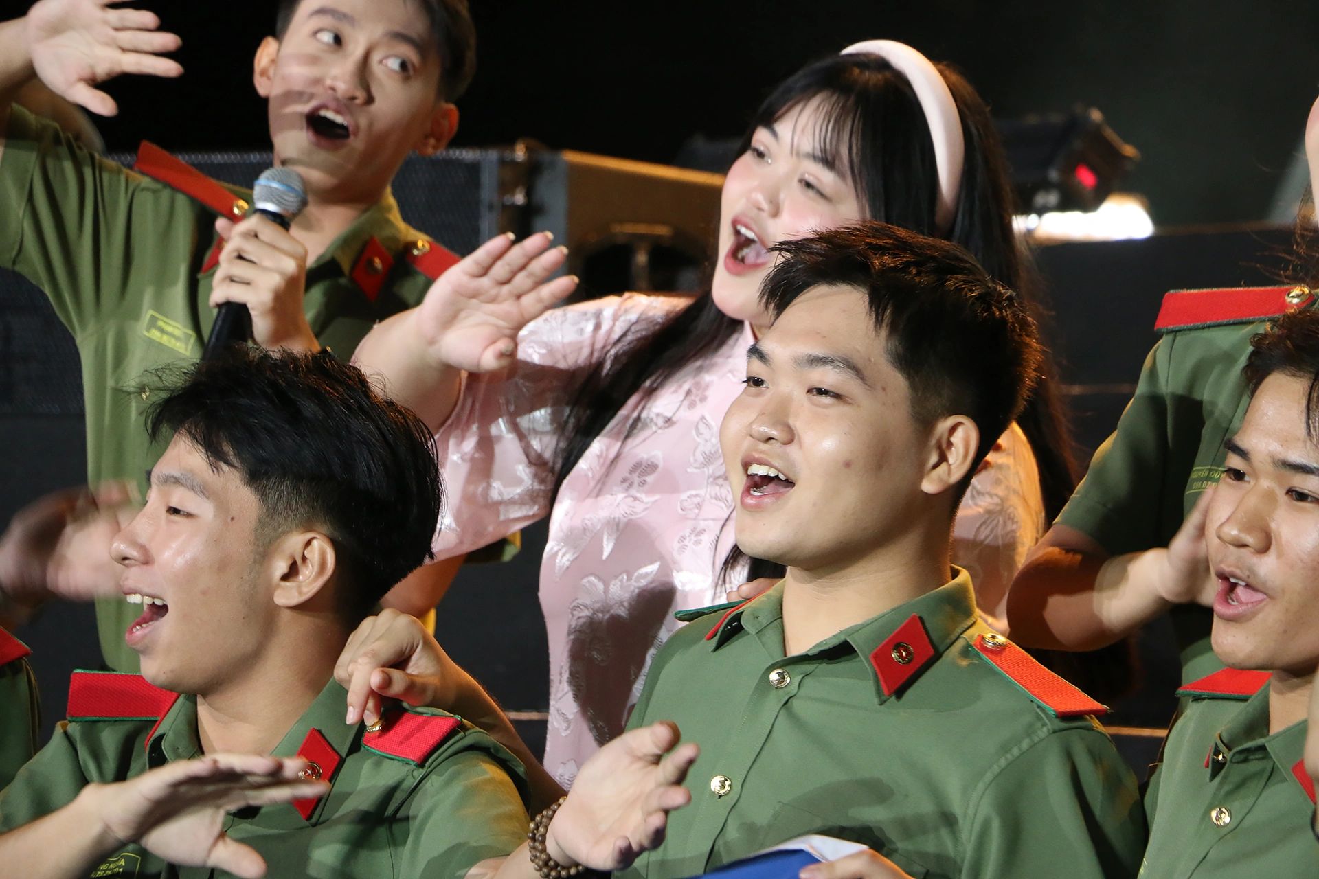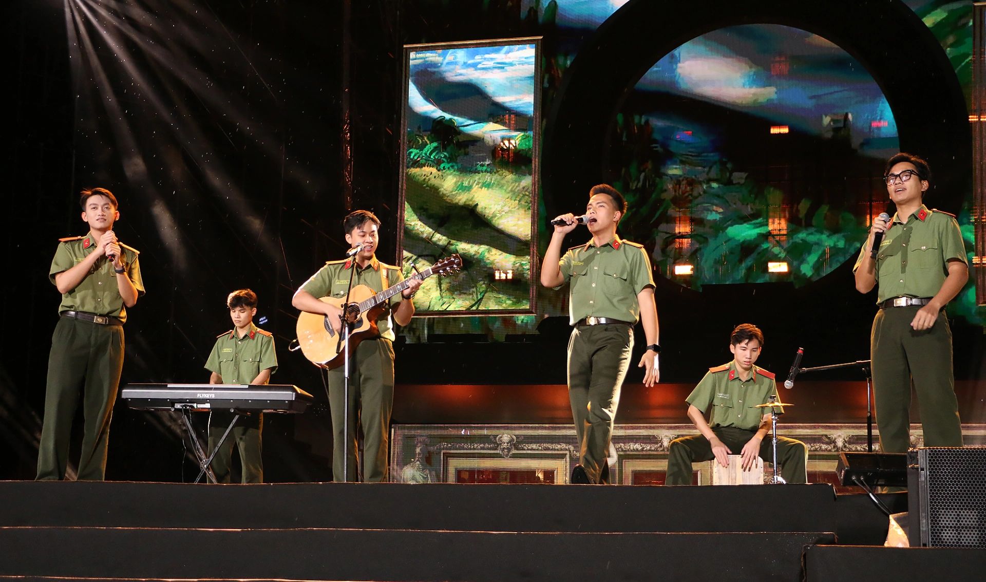 Chia sẻ với ban tổ chức và khán giả, em Đức Anh, học sinh lớp 12AD3 cho biết nhóm biểu diễn của em cảm thấy rất tự hào vì có cơ hội đứng trên sân khấu ngày hôm nay trình diễn cho tất cả mọi người. Em muốn gửi lời cảm ơn Bộ Công an cũng như các bên liên quan đã cho học sinh chúng em một cơ hội để được trình diễn, thỏa niềm đam mê.