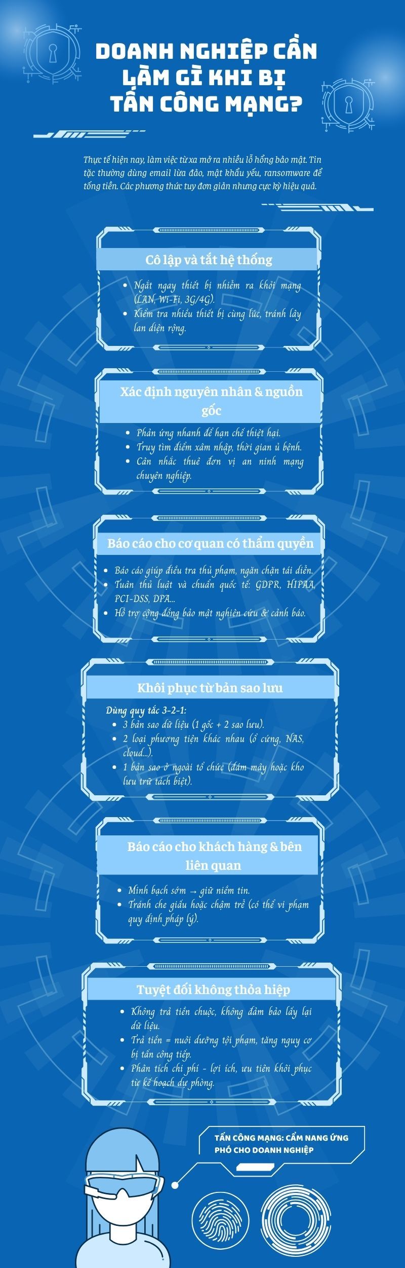 Làn sóng tấn công mạng đang diễn ra với nhiều hình thức tinh vi, không chỉ gây thiệt hại về dữ liệu và tài chính mà còn ảnh hưởng nghiêm trọng đến uy tín của doanh nghiệp. Để ứng phó hiệu quả, dưới đây là những bước đi cần thiết mà mọi tổ chức không thể bỏ qua.