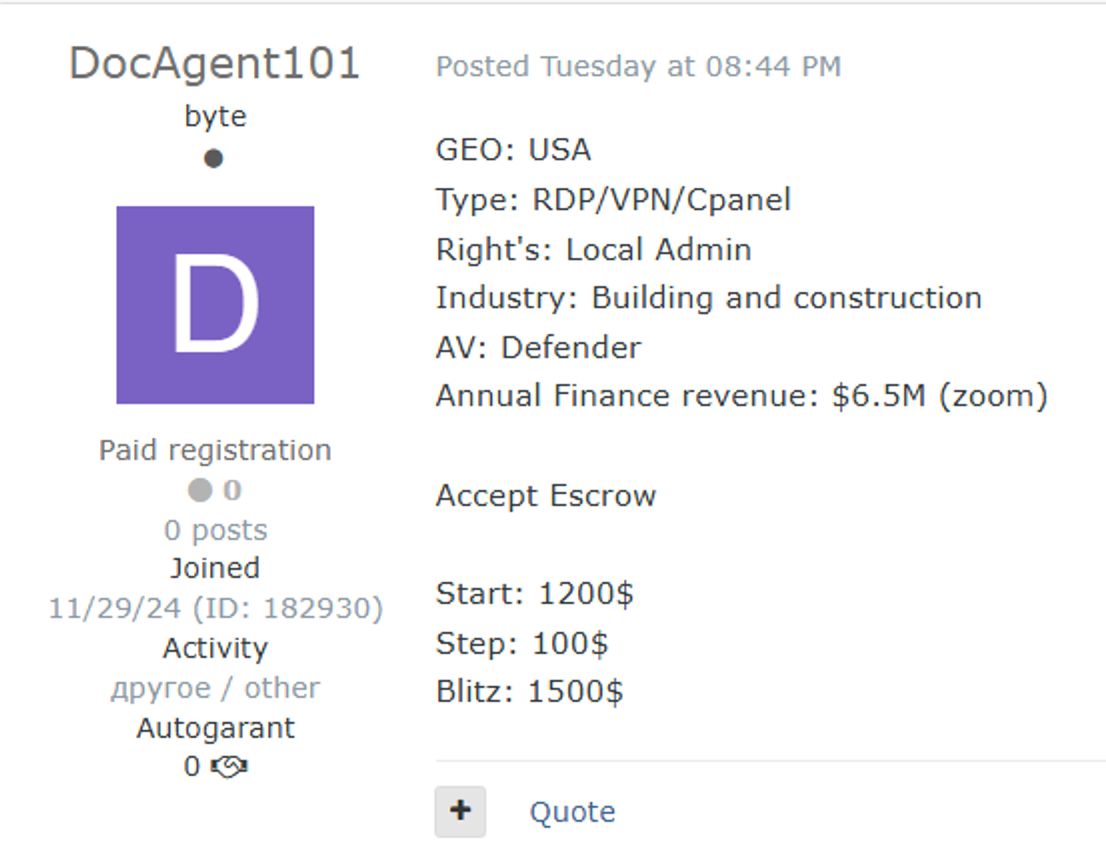 Các nhóm tội phạm mạng hiện tập trung khai thác các lỗ hổng truy cập ban đầu trong hệ thống. Thay vì phải dò quét và xâm nhập thủ công, tin tặc thường mua trực tiếp thông tin đăng nhập đã bị lộ hoặc chiếm đoạt từ các mạng từng bị xâm phạm trước đó. Các loại quyền truy cập được rao bán gồm VPN (Virtual Private Network - “mạng riêng ảo”), RDP (Remote Desktop Protocol - “giao thức điều khiển máy tính từ xa”), SSH (Secure Shell - “kênh kết nối từ xa được mã hóa bảo mật”), Citrix (“nền tảng truy cập ứng dụng và máy chủ ảo từ xa trong doanh nghiệp”), SMTP (Simple Mail Transfer Protocol - “giao thức gửi email giữa các máy chủ”) và FTP (File Transfer Protocol - “giao thức truyền tệp giữa máy tính và máy chủ”).