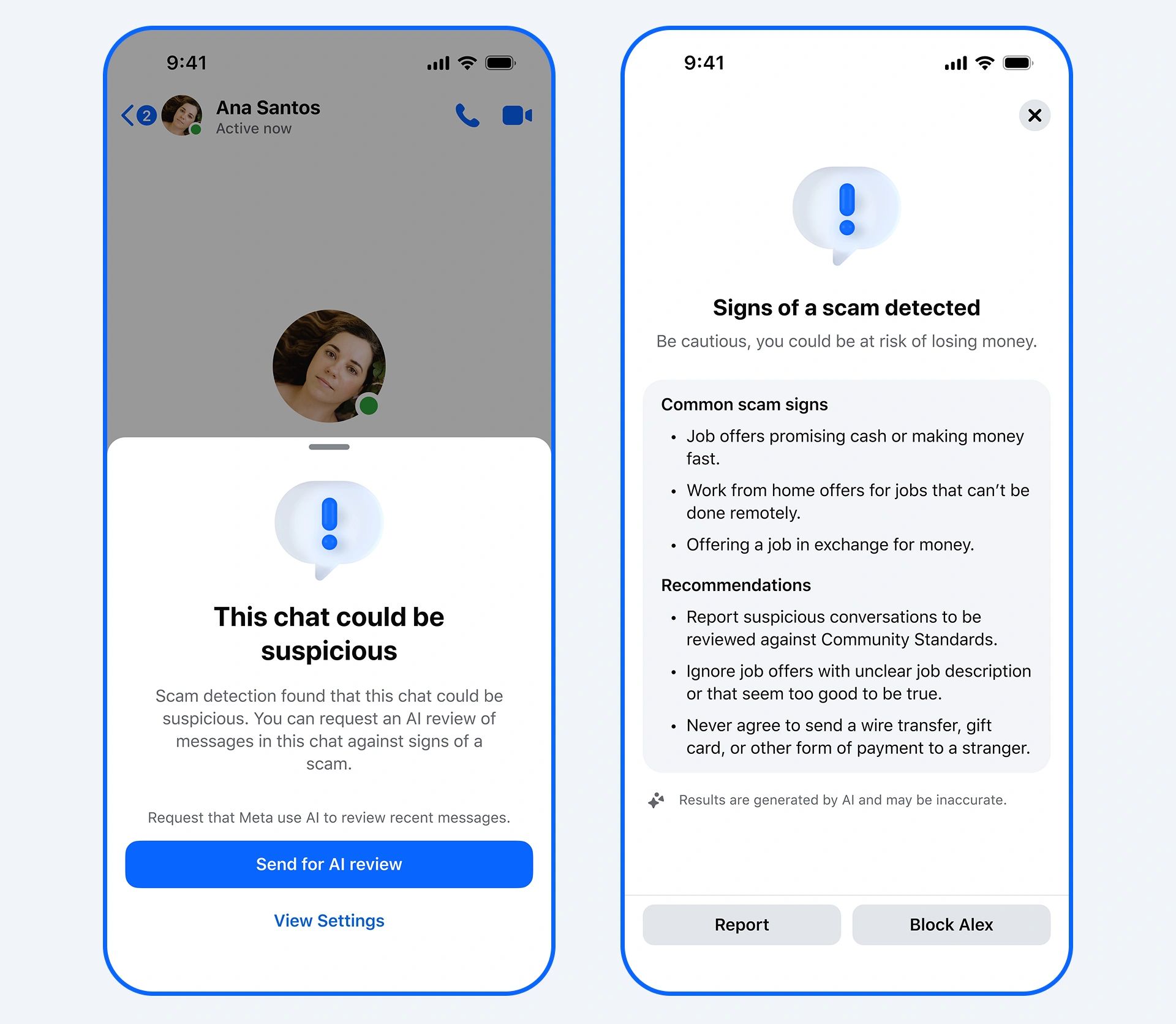Trong khi đó, Messenger sẽ đón nhận bản cập nhật mở rộng cho tính năng phát hiện lừa đảo nâng cao tại nhiều quốc gia ngay trong tháng này. Điểm cốt lõi của tính năng này là khả năng nhận diện các "kịch bản lừa đảo" kinh điển như lời mời việc làm "việc nhẹ lương cao" hay các cơ hội đầu tư tiền ảo đầy hứa hẹn. Khi phát hiện dấu hiệu rủi ro trong cuộc hội thoại với người lạ, hệ thống sẽ lập tức đưa ra khuyến cáo. Người dùng cũng có tùy chọn chia sẻ các tin nhắn gần nhất để AI đánh giá mức độ nguy hiểm, từ đó nhận được những tư vấn xác đáng về việc có nên chặn hoặc báo cáo tài khoản vi phạm hay không.