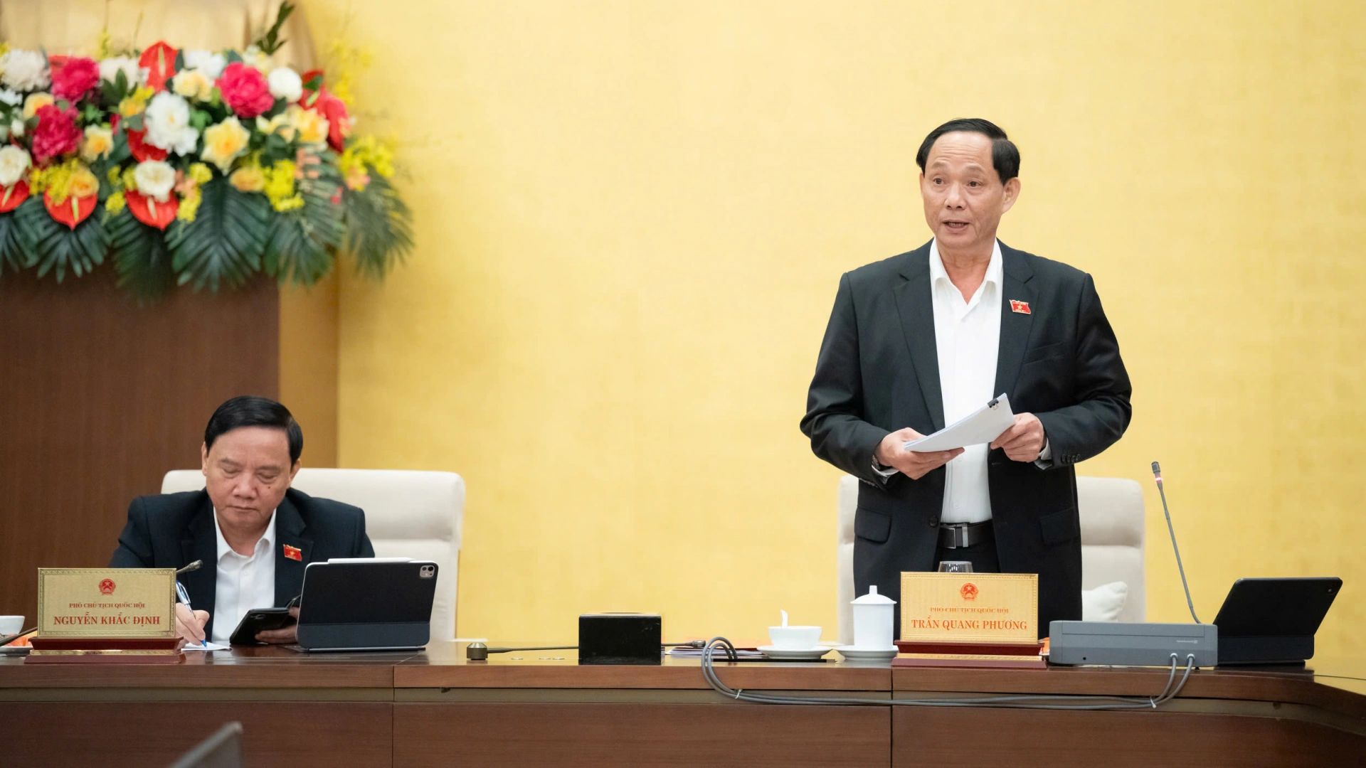| Phó Chủ tịch Quốc hội - Thượng tướng Trần Quang Phương điều hành Phiên họp. |