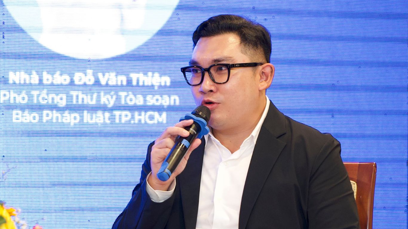 | Luật sư Lê Ngô Trung - Giám đốc Công ty Luật TNHH Trung Lê và Cộng sự chia sẻ tại Hội thảo. |