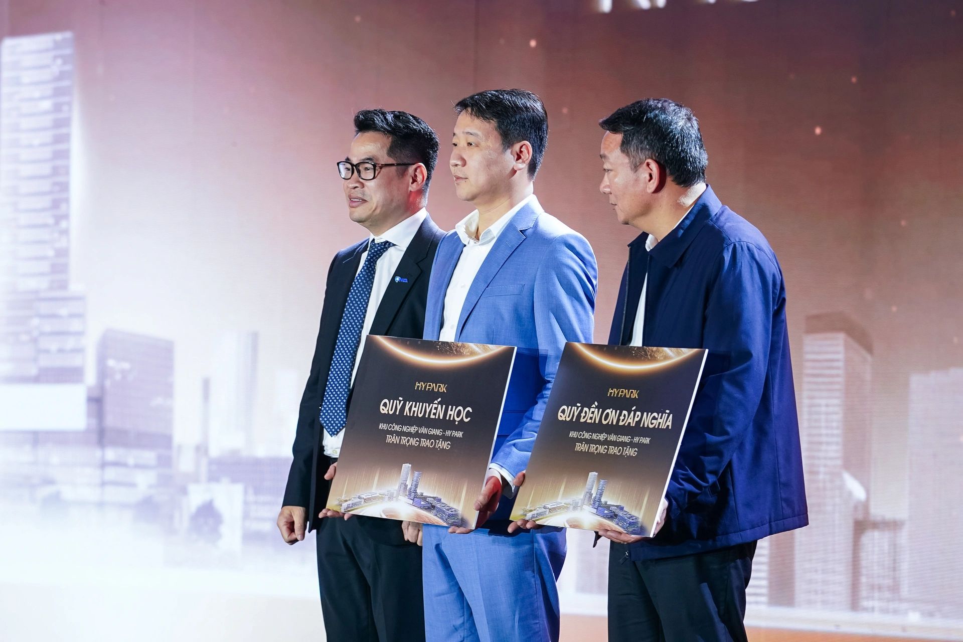 Trong khuôn khổ buổi lễ, đại diện Khu công nghiệp Văn Giang - HY Park đã trao tặng Quỹ khuyến học và Quỹ đền ơn đáp nghĩa cho địa phương nhằm góp phần hỗ trợ, khuyến khích thế hệ trẻ địa phương vươn lên trong học tập, đào tạo nguồn nhân lực cho phát triển công nghiệp công nghệ cao trong tương lai.
