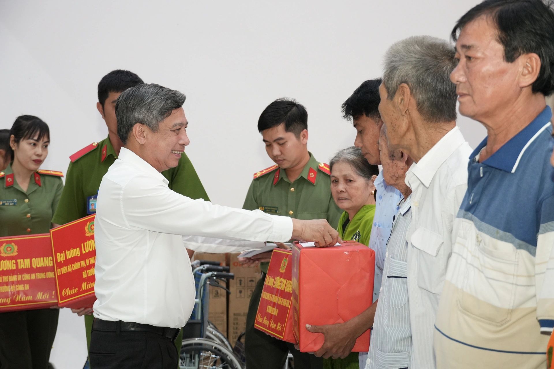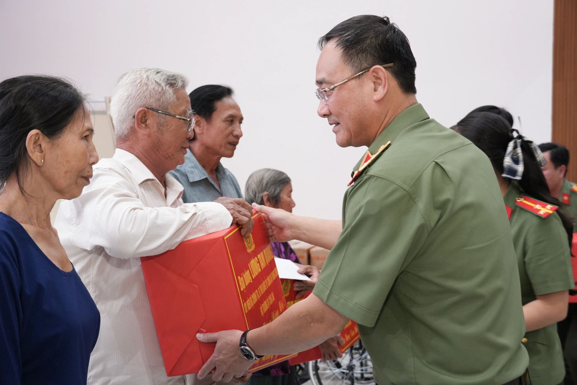 | Thượng tướng Phạm Thế Tùng trao tặng 20 phần quà của Đại tướng Lương Tam Quang, Ủy viên Bộ Chính trị, Bí thư Đảng ủy Công an Trung ương, Bộ trưởng Bộ Công an, Chủ tịch Hiệp hội An ninh mạng quốc gia cho 20 thương binh và đại diện gia đình có công với cách mạng. |