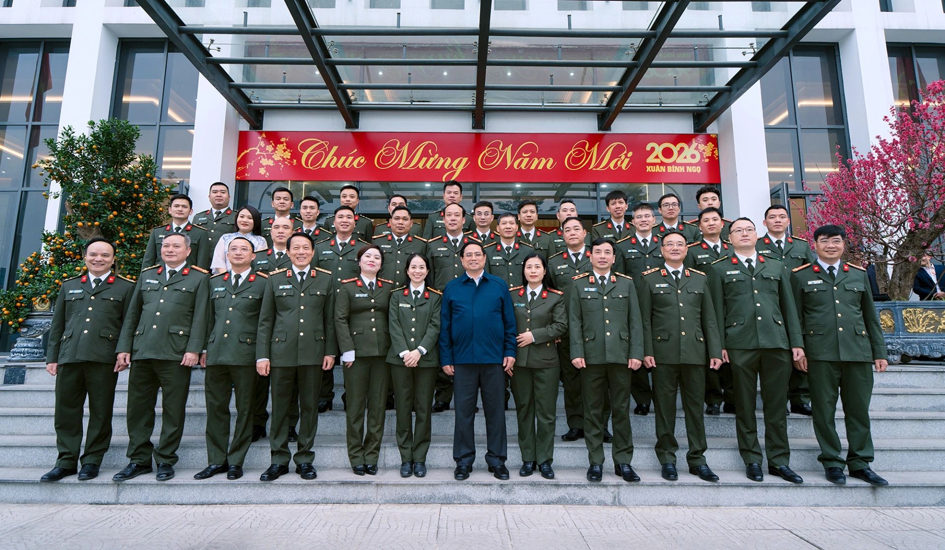 Đón tiếp Thủ tướng có Đại tướng Lương Tam Quang, Bộ trưởng Bộ Công an và Thượng tướng Phạm Thế Tùng, Thứ trưởng Bộ Công an. Buổi làm việc diễn ra trong không khí trang trọng nhưng ấm cúng, thể hiện sự quan tâm trực tiếp của lãnh đạo Chính phủ đối với lực lượng đang ngày đêm trực chiến ở “mặt trận đặc biệt” - mặt trận không tiếng súng nhưng đầy phức tạp, thách thức.