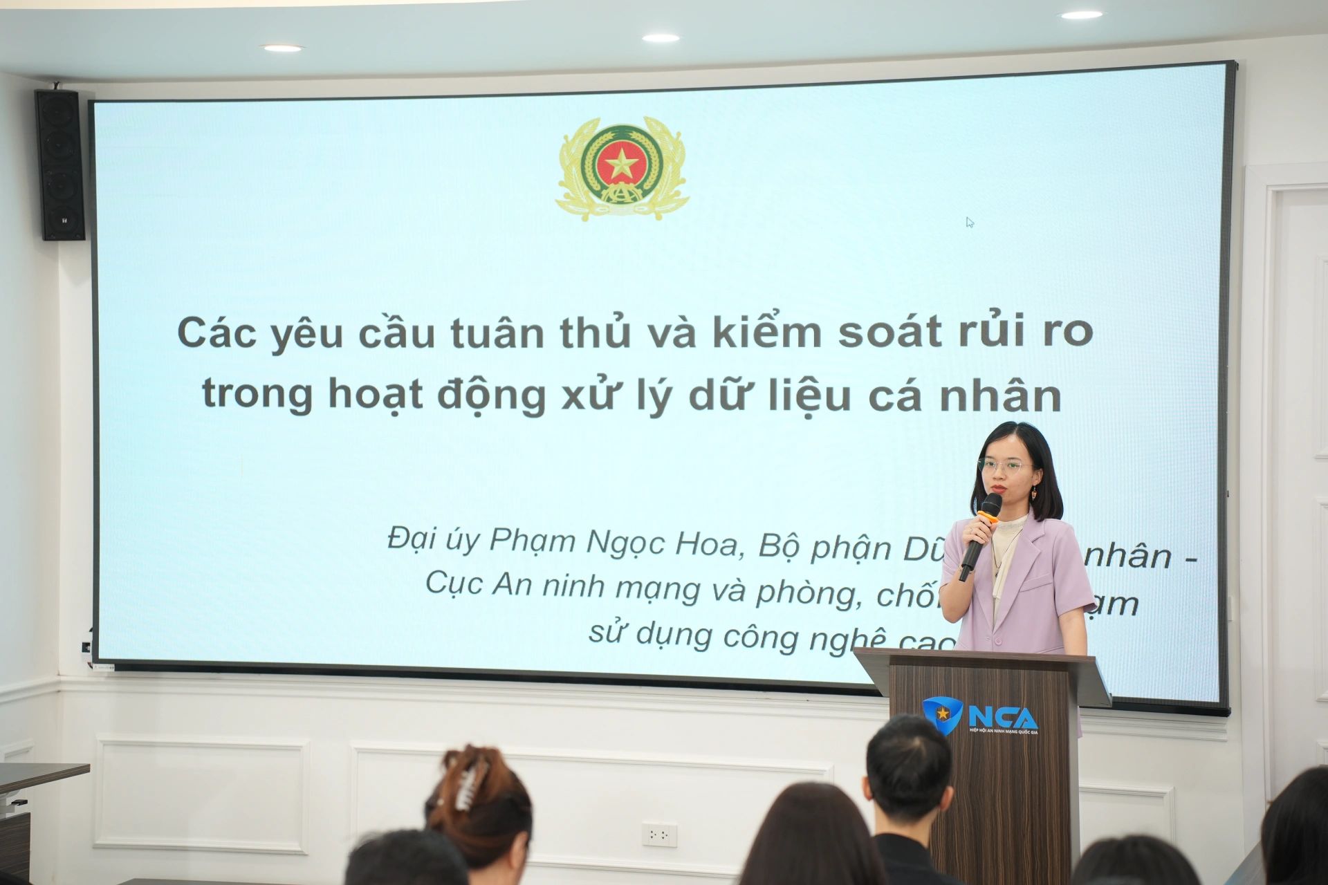 Trong bài tham luận về “Các yêu cầu tuân thủ và kiểm soát rủi ro trong hoạt động xử lý dữ liệu cá nhân” tại Hội thảo, Đại úy Phạm Ngọc Hoa, Bộ phận Dữ liệu cá nhân - Cục An ninh mạng và phòng, chống tội phạm sử dụng công nghệ cao, Bộ Công an nhận định, tuân thủ Luật Bảo vệ dữ liệu cá nhân của các doanh nghiệp còn gặp nhiều vướng mắc.