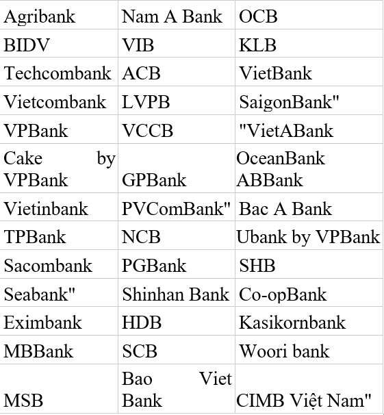 Danh sách các ứng dụng ngân hàng có thể quét mã QR đa năng VNPT Money để thanh toán: