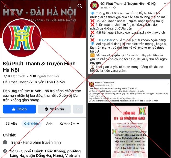 Theo đó, các đối tượng đã sử dụng hình ảnh, logo, tên gọi của Đài Phát thanh và Truyền hình Hà Nội để lập các fanpage giả mạo rồi đăng tải thông tin về việc tiếp nhận giải quyết các vụ lừa đảo, hứa hẹn giúp thu hồi tiền với thủ tục “nhanh chóng, đơn giản”. Lợi dụng tâm lý mong muốn lấy lại tài sản của nạn nhân, các đối tượng yêu cầu người bị hại chuyển khoản trước một khoản “phí hỗ trợ” hoặc tham gia thực hiện “nhiệm vụ” để rút tiền treo trên hệ thống. Sau khi nạn nhân chuyển tiền, chúng viện lý do như “tài khoản lỗi”, “hệ thống bảo trì” để chiếm đoạt và không hoàn trả lại tiền.